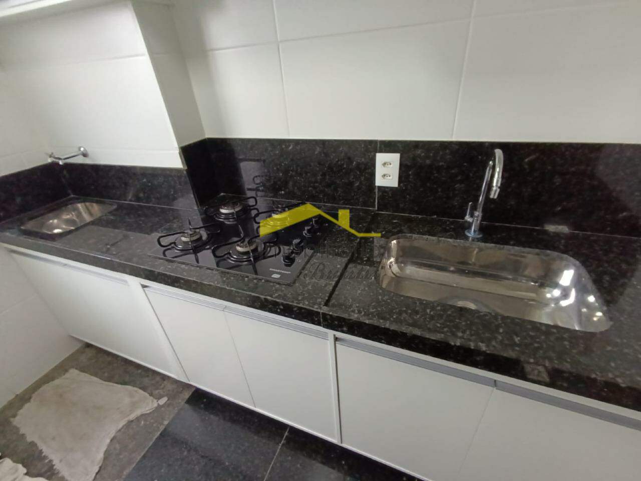 Sala para 2 ambientes em porcelanato, cortina e painel para TV. 1 quarto em laminado de madeira, armário, painel para TV. Varanda com fechamento em cortina de vidro. Cozinha em granito com bancadas em granito, armários planejados, cooktop e microondas. Área de serviço.