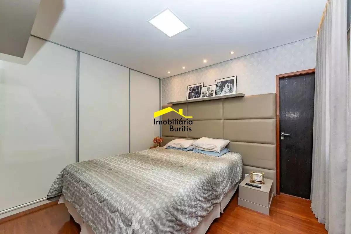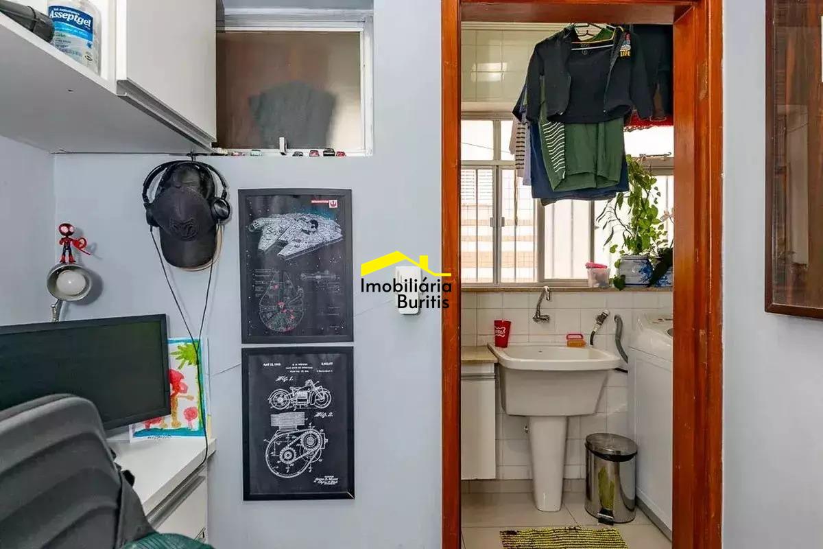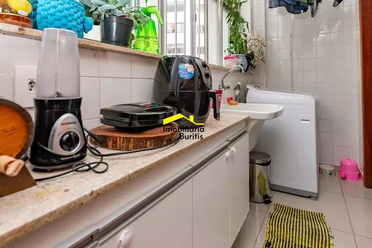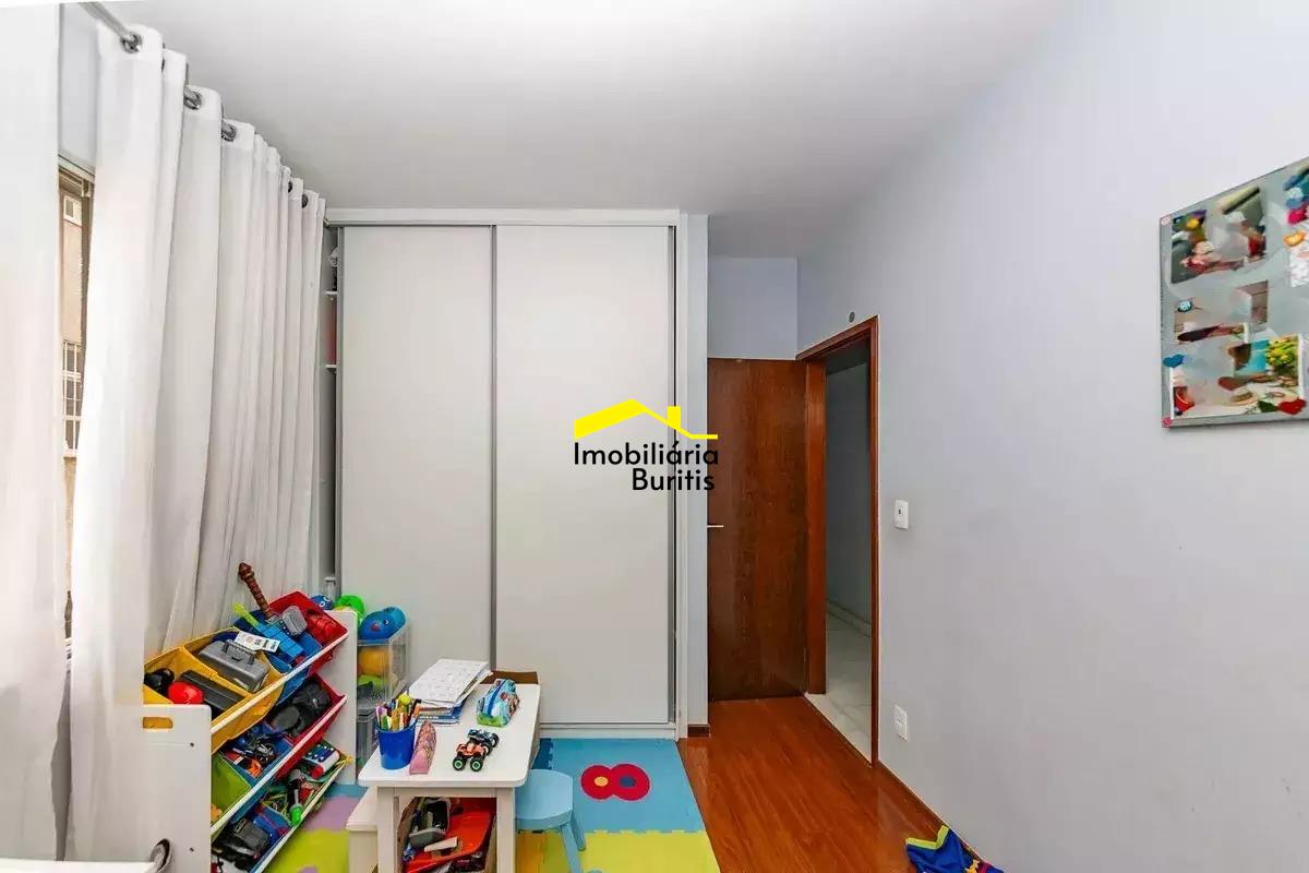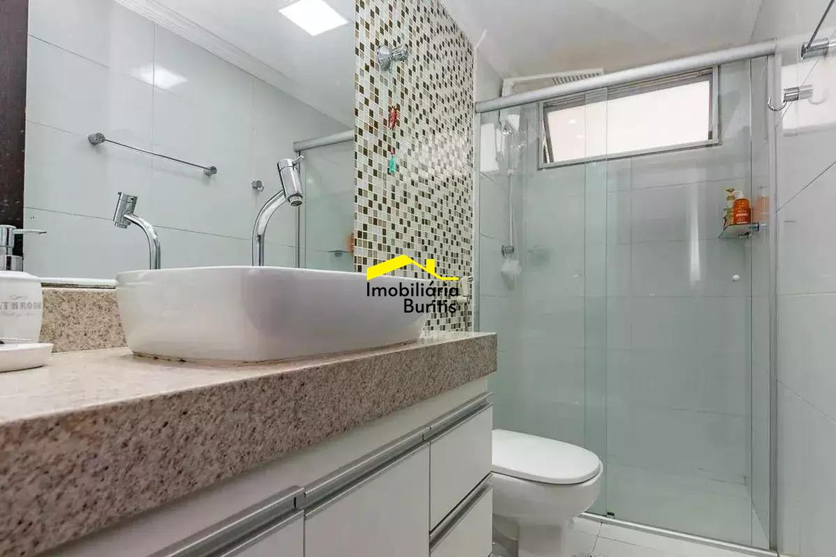 Apartamento à venda no Buritis com aproximadamente 130 m², composto por sala ampla para três ambientes, com projeto de iluminação e varanda integrada com fechamento em cortina de vidro, além de lavabo. A área íntima conta com três quartos bem distribuídos, sendo uma suíte, todos com armários planejados, além de banheiro social. A cozinha é espaçosa, totalmente montada, com área de serviço independente e dependência completa de empregada. O imóvel possui acabamento em piso de granito. São duas vagas de garagem cobertas e em linha, com box de despejo, comportando até três veículos de grande porte. Prédio individual, todo revestido, em localização estratégica, próximo a comércio variado e linhas de ônibus. O valor do condomínio pode sofrer alterações conforme decisões internas e consumo de itens como água e gás.