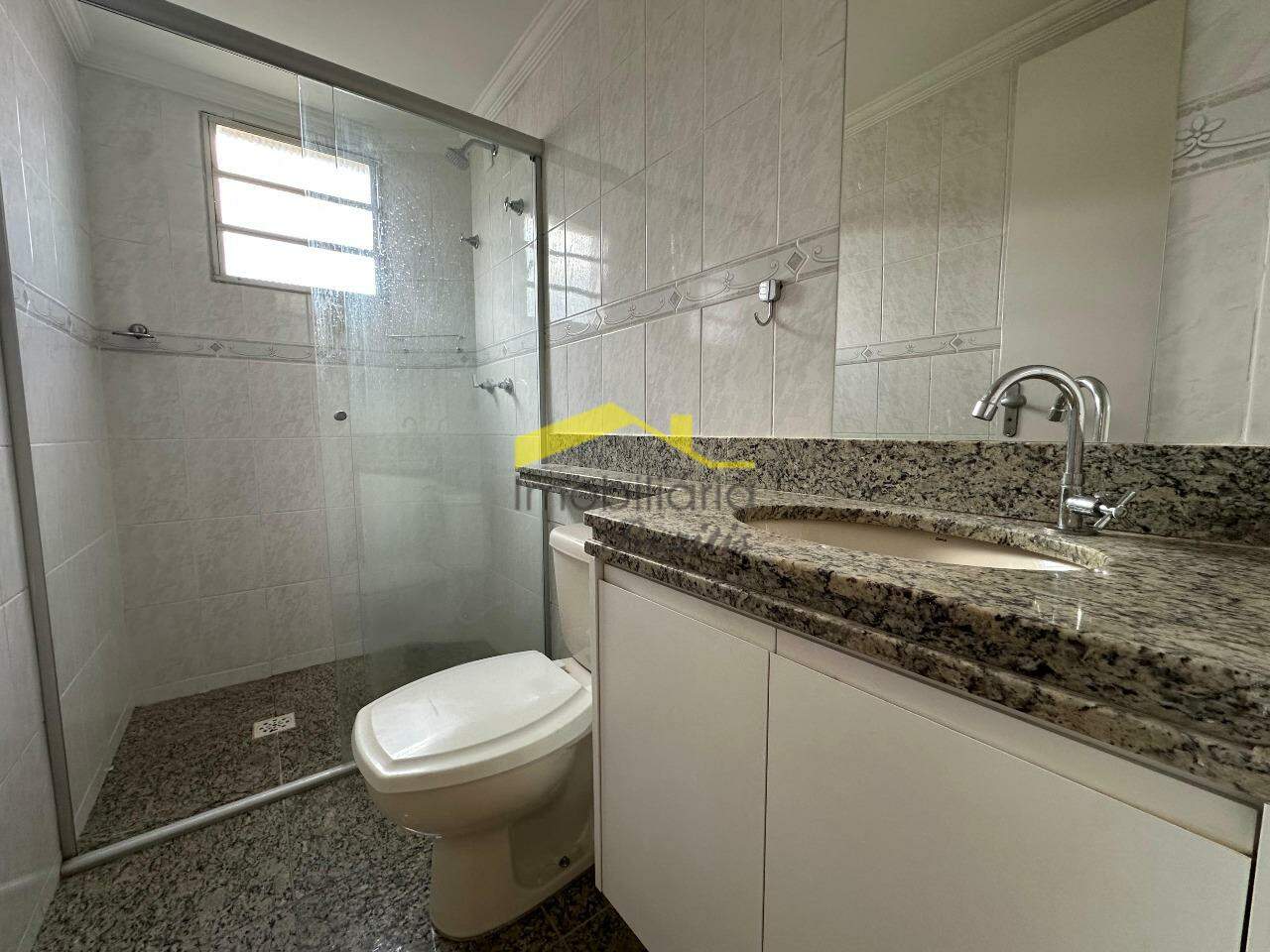 Banheiros reformados, com armários novos e sistema de ducha com aquecimento solar