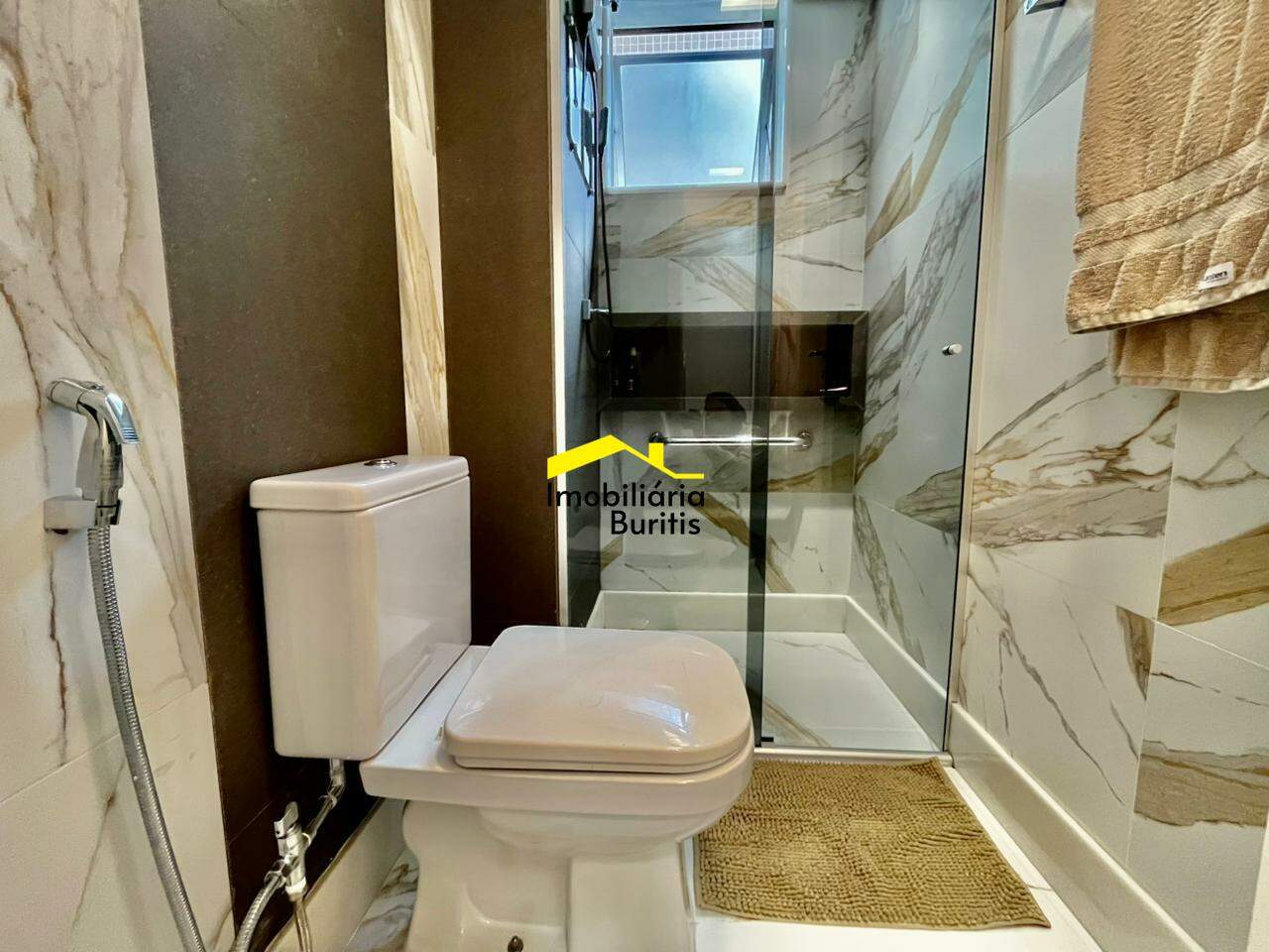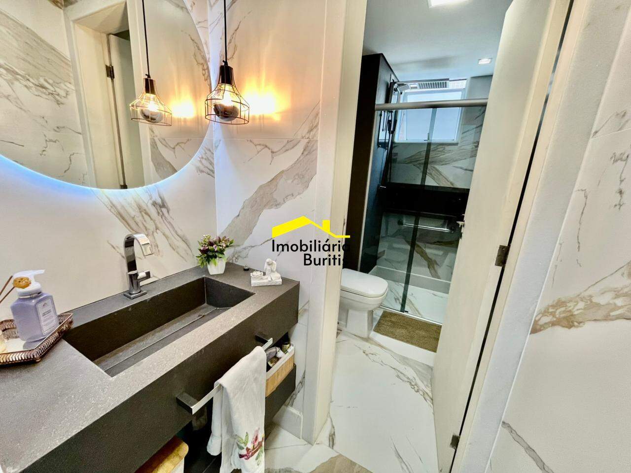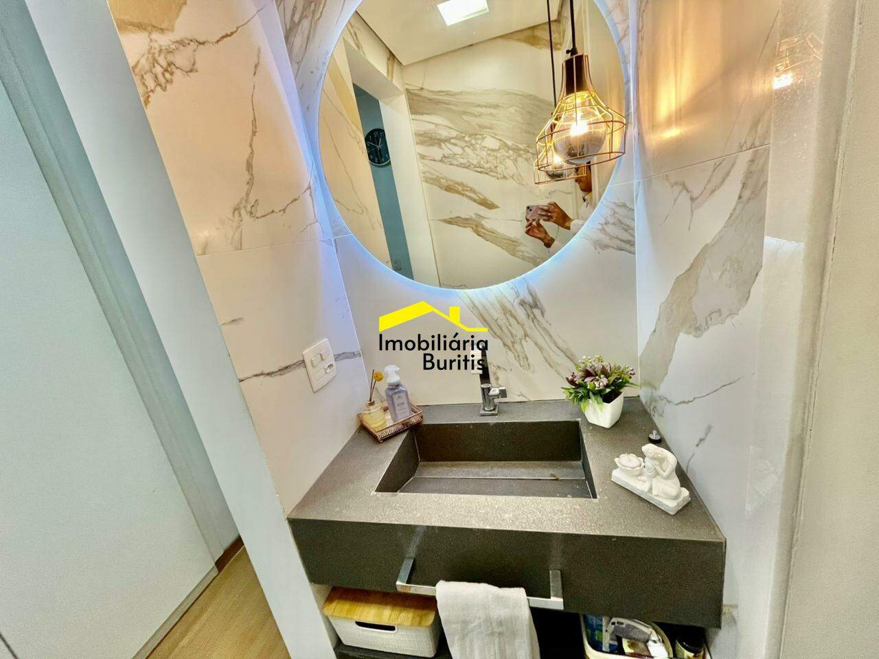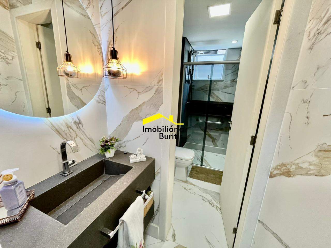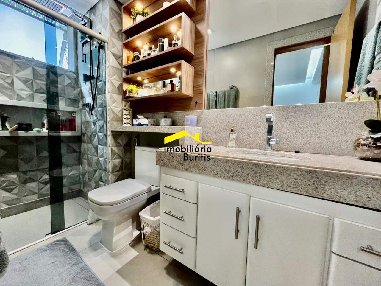 4 quartos todos com armários, sendo 1 suíte, banheiro da suíte com armários , espelho e blindex. Banheiro social separado do lavabo com blindex e espelho.