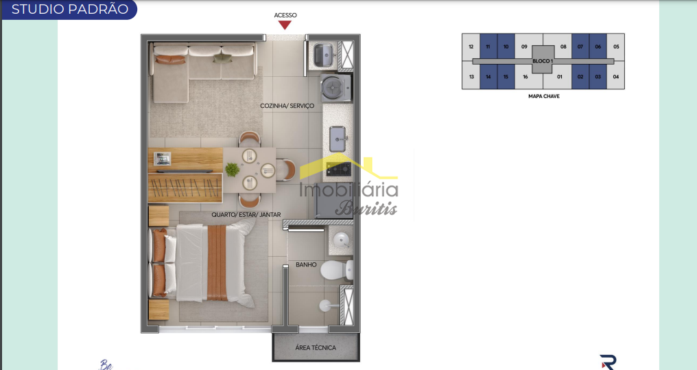 Apartamento 1 quarto (Studio) – Elevadores – Lazer – Localização