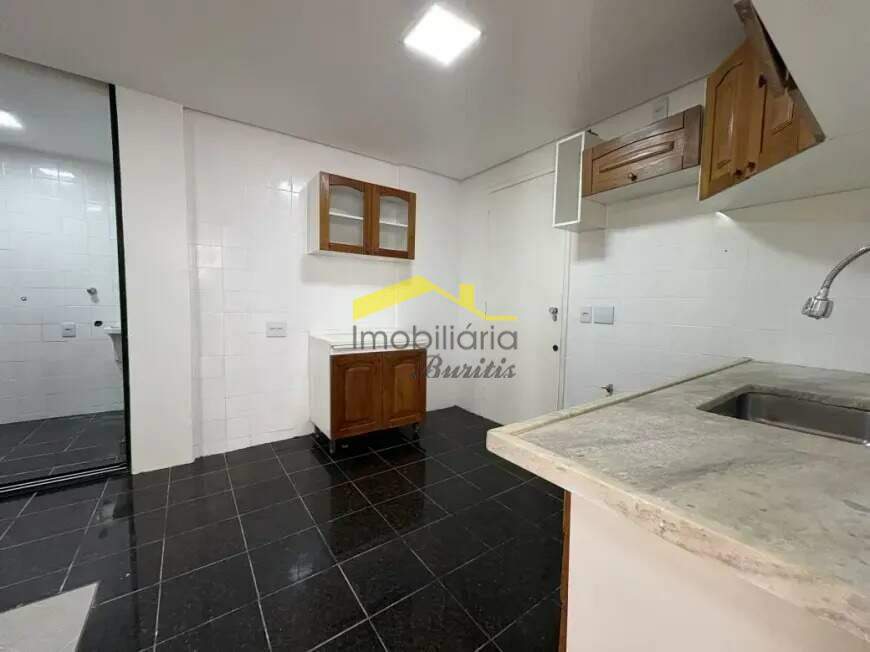 Cozinha espaçosa em granito, bem ventilada e funcional.