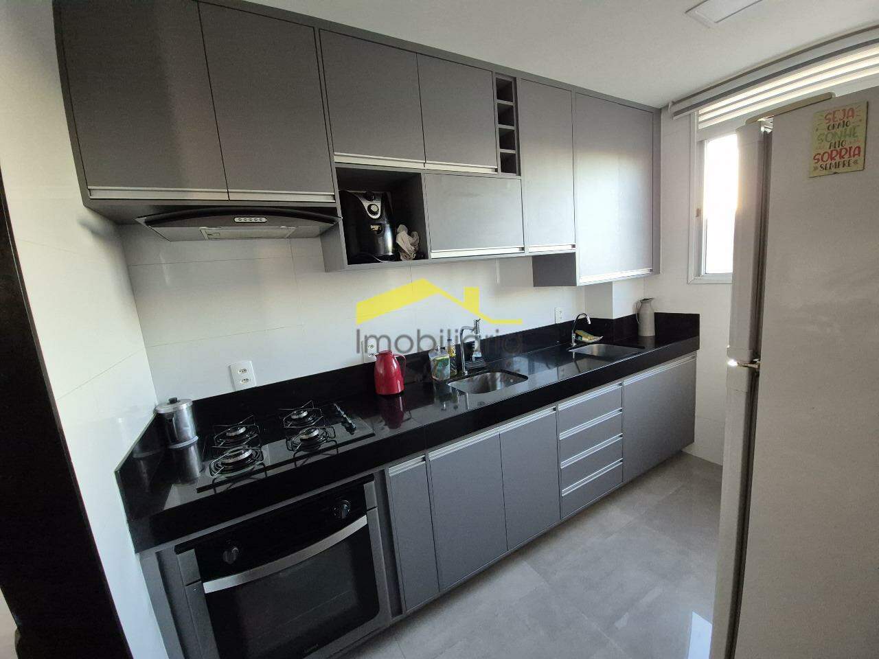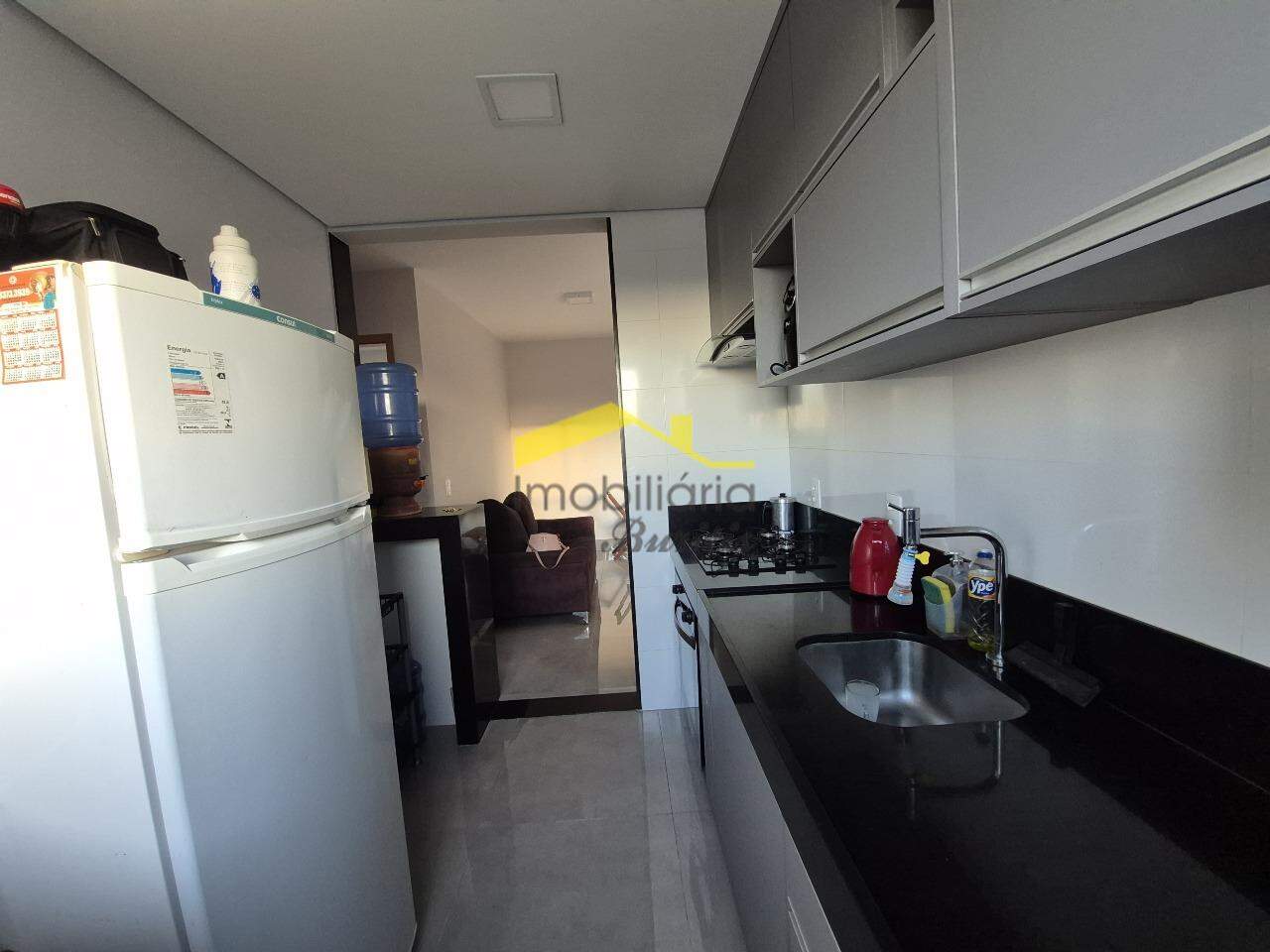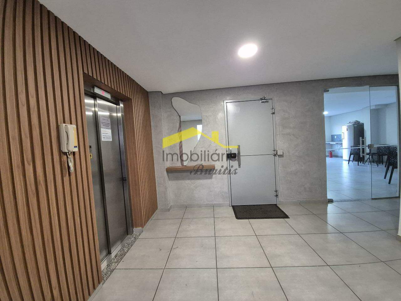 Apartamento de 47m² com sala e cozinha integradas, piso em porcelanato, armários planejados na cozinha, 2 quartos bem iluminados e banheiro social. Possui 1 vaga de garagem coberta.