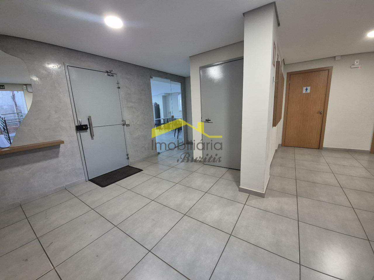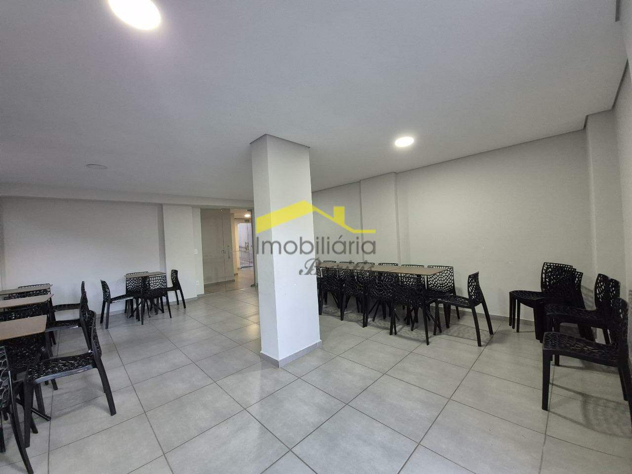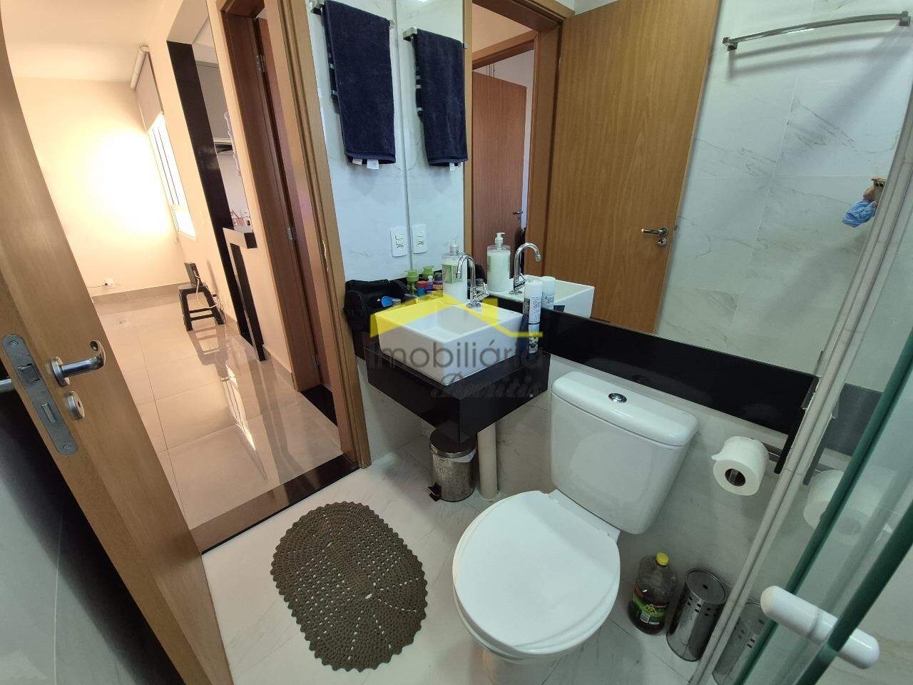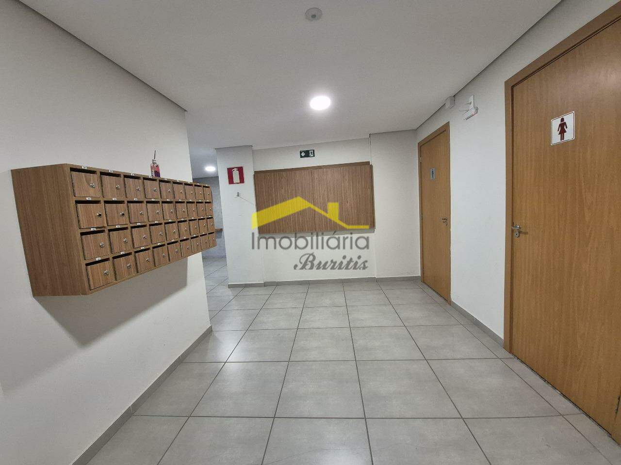 Apartamento de 47m² com sala e cozinha integradas, piso em porcelanato, armários planejados na cozinha, 2 quartos bem iluminados e banheiro social. Possui 1 vaga de garagem coberta.