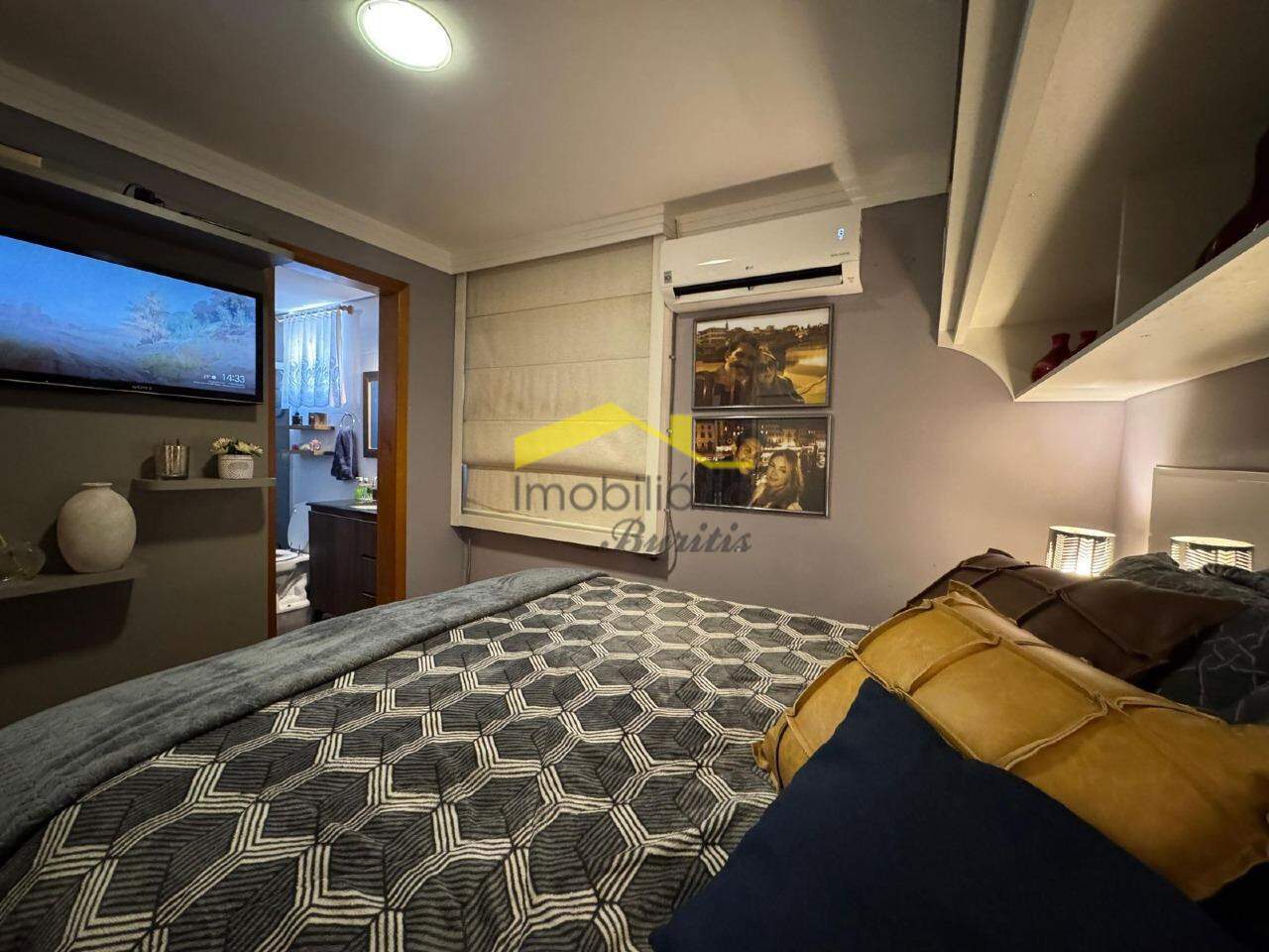 Os dois quartos restantes são bem distribuídos, com armários planejados, sendo 1 suíte com ar-condicionado e marcenaria de qualidade. O quarto infantil é funcional e colorido, com decoração personalizada e ótimo aproveitamento de espaço.