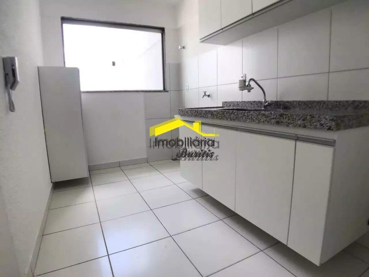 Cozinha com armários, sendo bancadas em granito e piso em cerâmica.