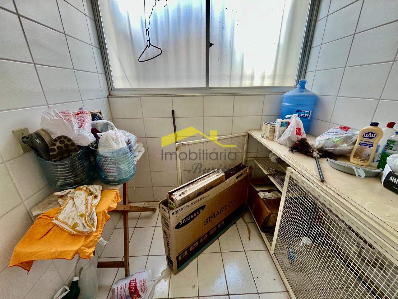 Para maior comodidade, a área de serviço também é equipada com armários e piso em cerâmica.