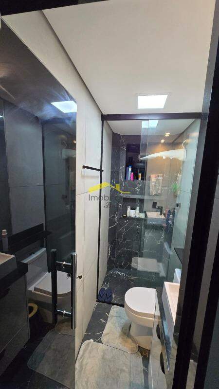 - Rebaixamento em gesso + espelhos grandes na sala e banheiro, ampliando a sensação de espaço
