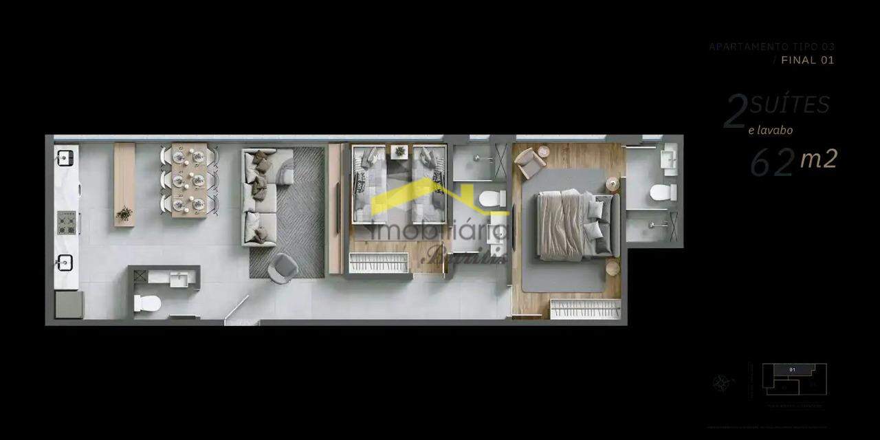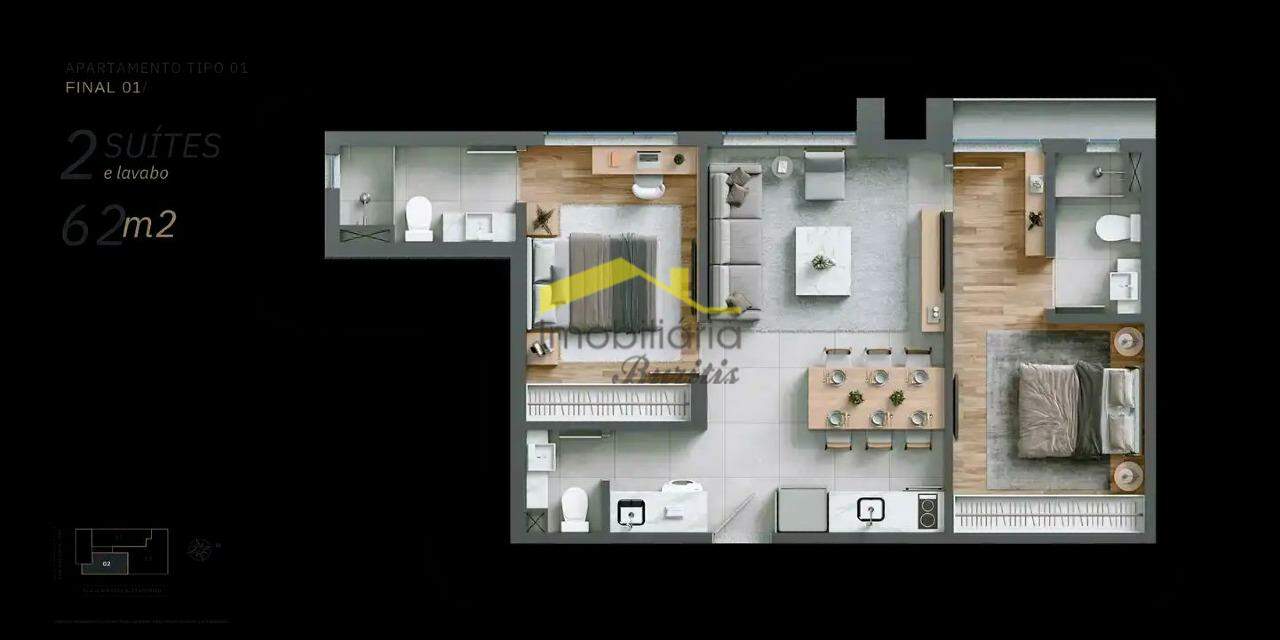 02 quartos, sendo duas suítes.