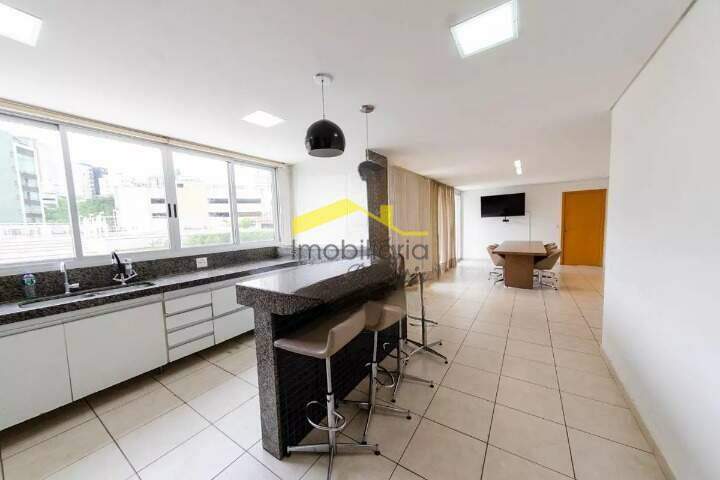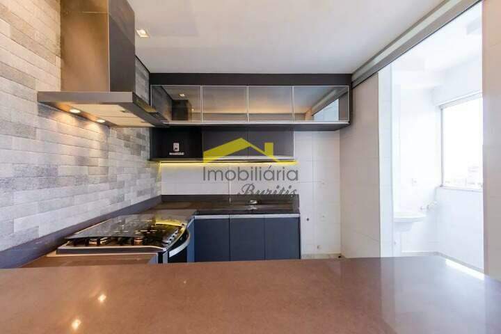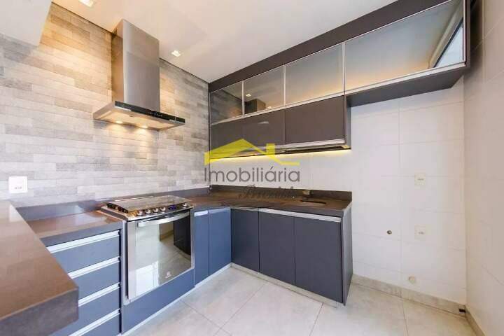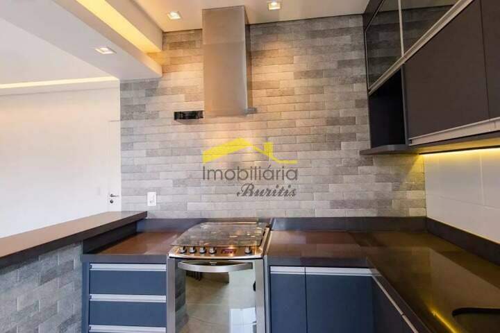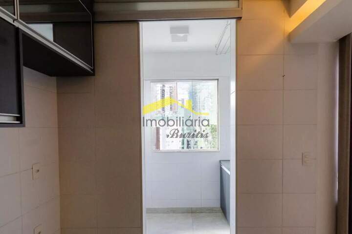 Sala para 2 ambientes com vista definitiva, painel de madeira, piso em porcelanato, varanda incorporada; 2 quartos com armários, piso em laminado de madeira, sendo uma suíte; banhos com armários, box e espelho; cozinha estilo americano com armários; área de serviço; 1 vaga de garagem cobertas.