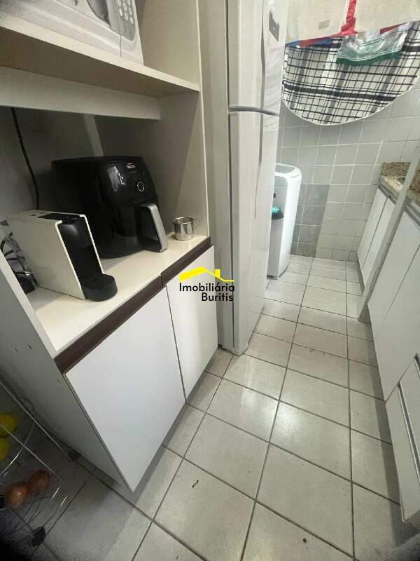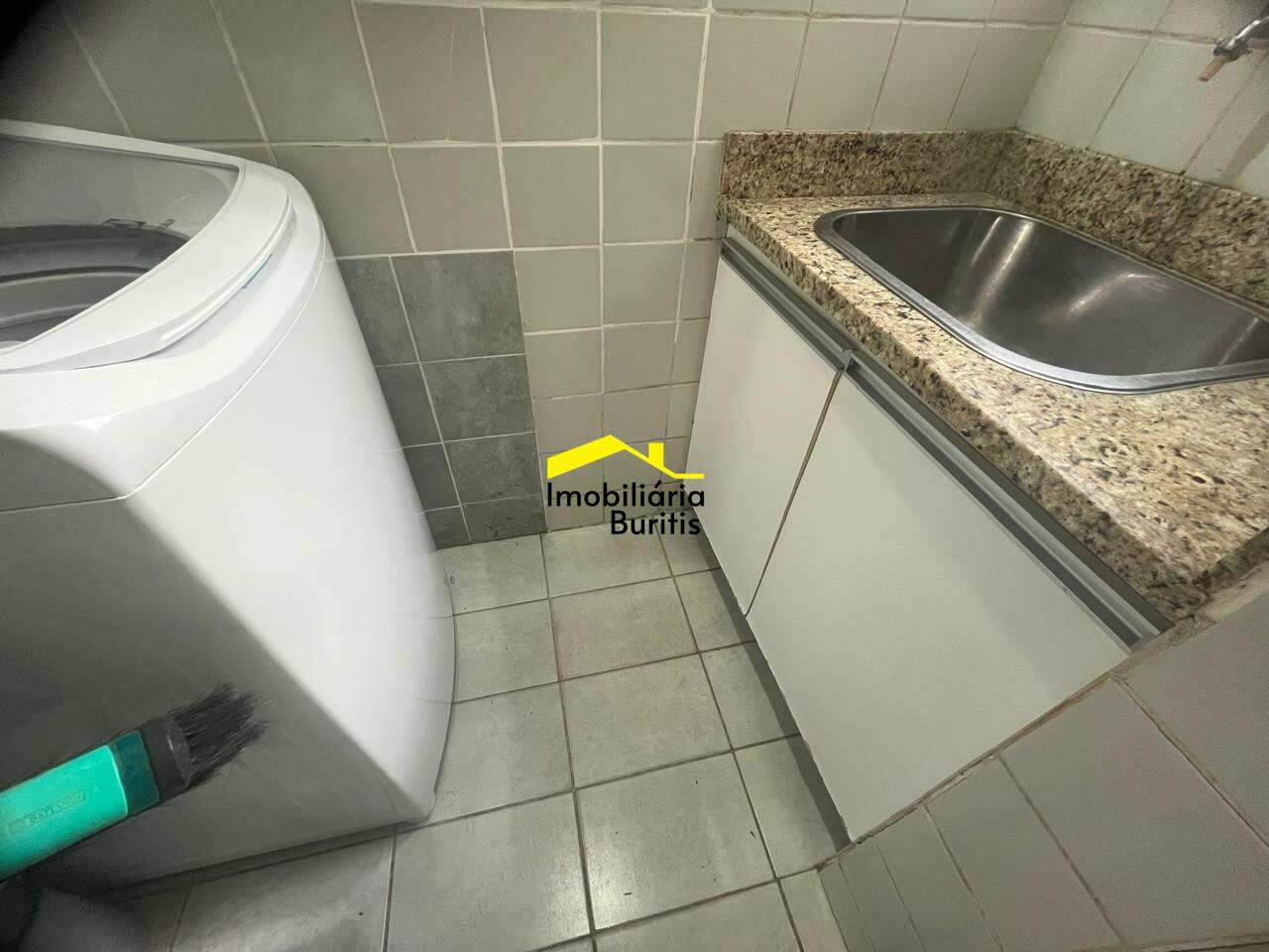 Área de serviço integrada com piso em cerâmica e armário.