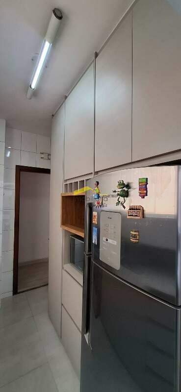 Uma sala para dois ambientes com piso em laminado, três quartos com armários planejados, e piso em laminado, o quarto da suíte com varanda fechada em blindex, Banheiro social e suíte com armário, espelho e box em blindex, bancadas e piso dos banhos em granito, cozinha com pia e bancadas em granito, e armários planejados, piso da cozinha em porcelanato, área de serviço com armário, e piso em porcelanato, banheiro de empregada com piso em porcelanato, o mesmo foi transformado em despensa, uma vaga de garagem livre e coberta.