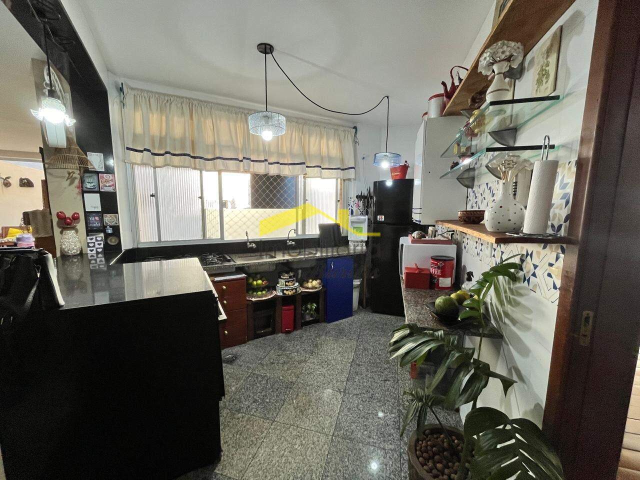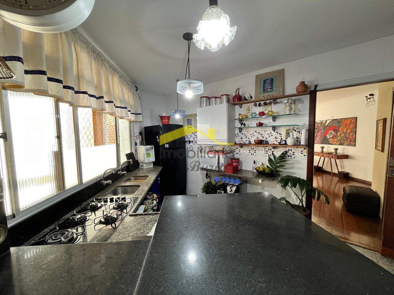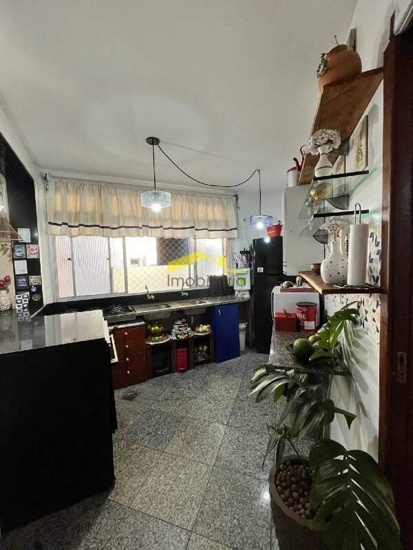 Cozinha - Americana com bancada em granito preto, piso em granito, duas pias inox, gás canalizado (GASMIG), instalação para cooktop e forno a gás. Ampla copa, comporta mesa para 10 lugares mais armários/buffet
