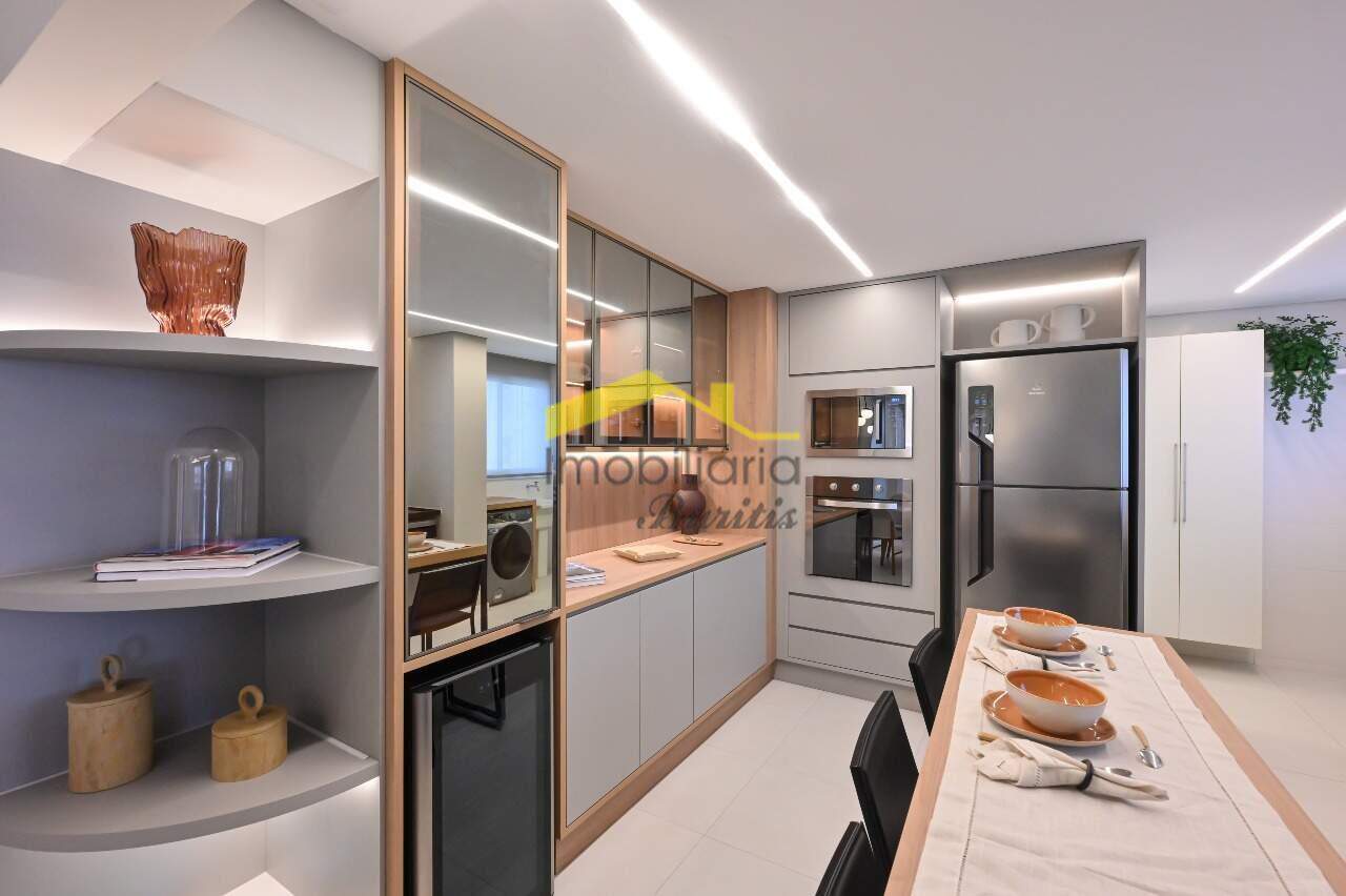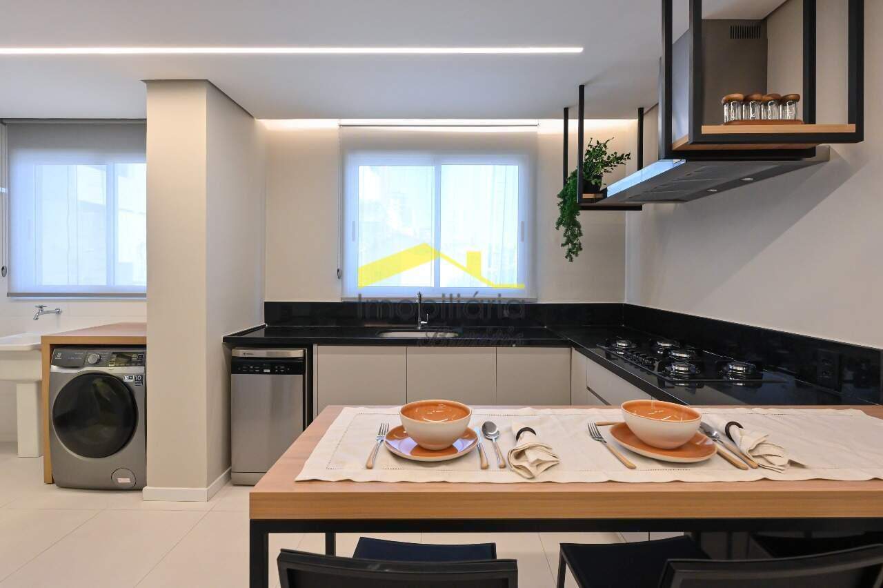 Apartamento de 96,74m², 3 quartos sendo uma suíte com closet, sala para dois ambientes, varanda, banho social, cozinha, área de serviço independente com banheiro.