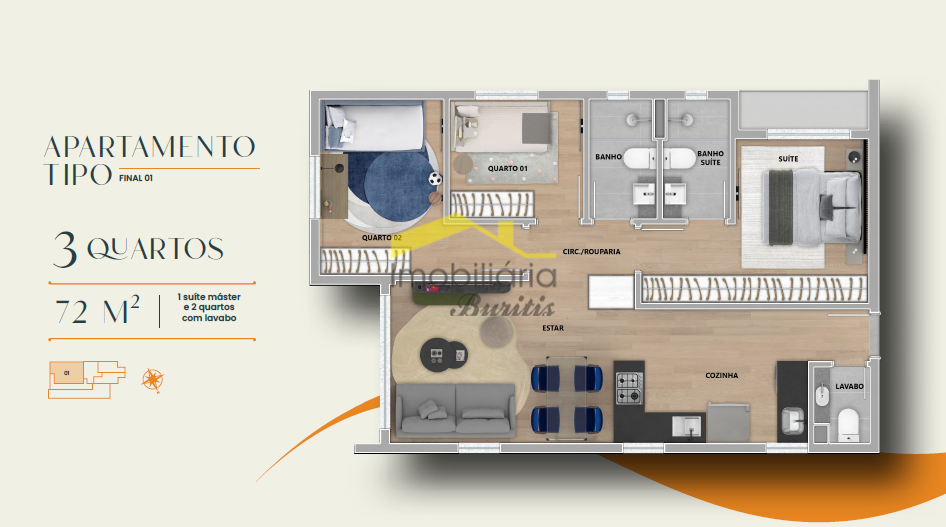 Excelente área privativa com 3 quartos, 1 suíte e 2 vagas.