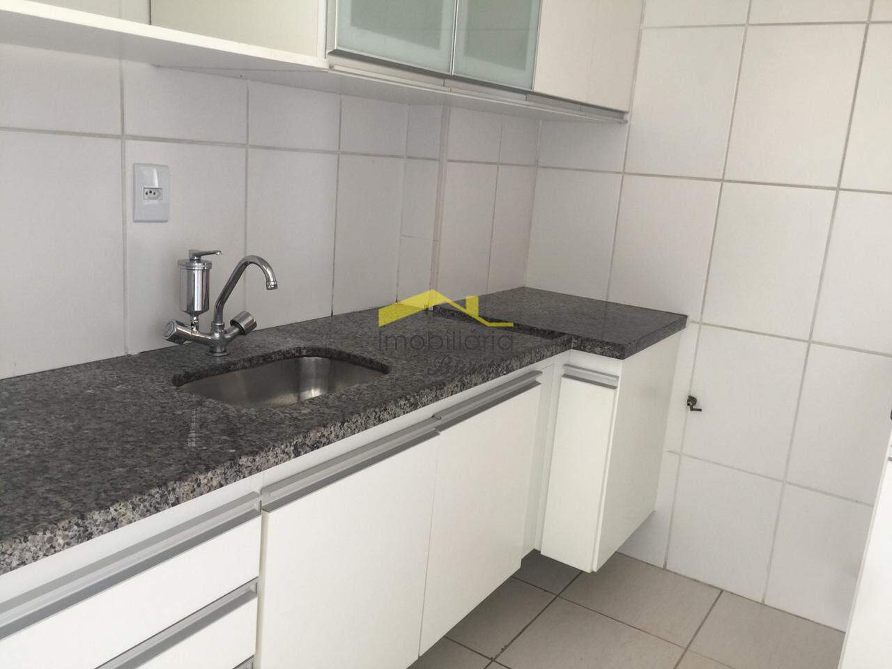 Cozinha com armários e bancada em granito.