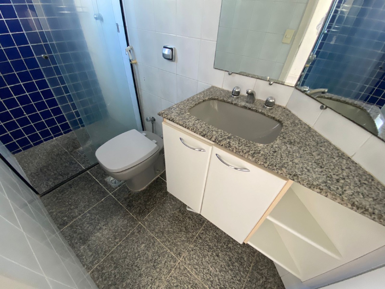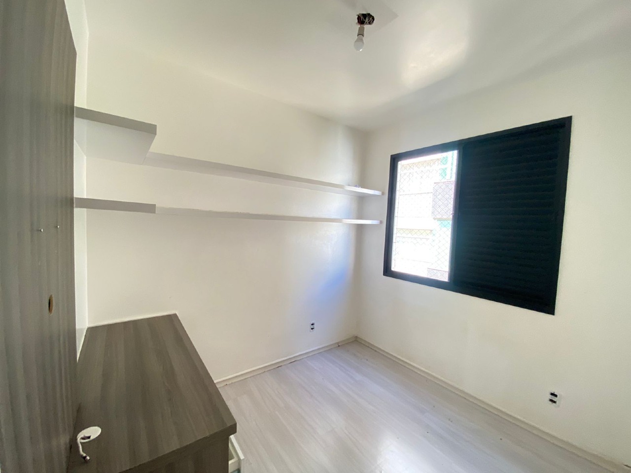 Apartamento 03 quartos sendo 01 suíte, todos os quartos com piso em laminado, armários; banho social e suíte com piso e bancada em granito, blindex, armários; sala para 02 ambientes com piso em porcelanato, teto rebaixado em gesso, iluminação planejada, varanda; cozinha com piso em bancada em granito, armários; área de serviço; DCE.