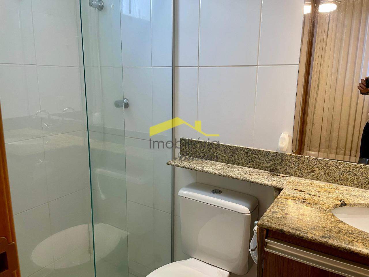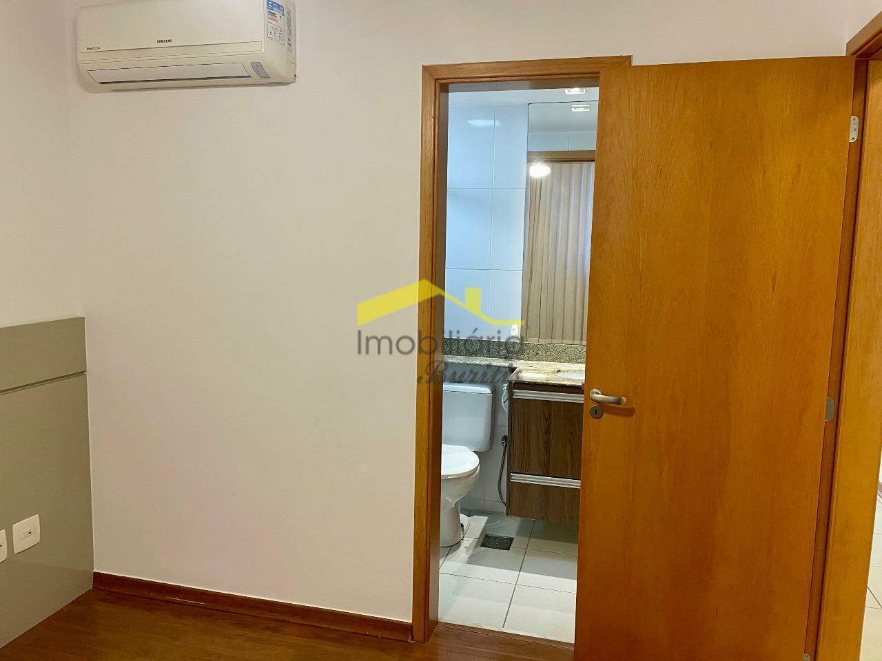 São 3 quartos, sendo um deles suíte, todos com armários planejados, ar-condicionado e acabamentos de qualidade. Banheiros com bancada em granito, box em vidro e armário sob a pia.