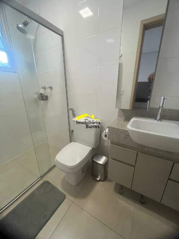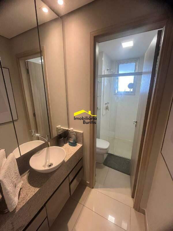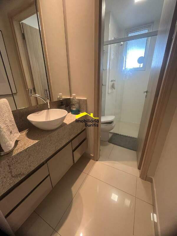 1 suite com armário sob pia , piso em porcelanato, box vidro temperado, bancada em granito, Banho social com fino acabamento, box , bancada em granito e pia sobre posta, com armários sob bancada e espelho. rouparia planejada.
