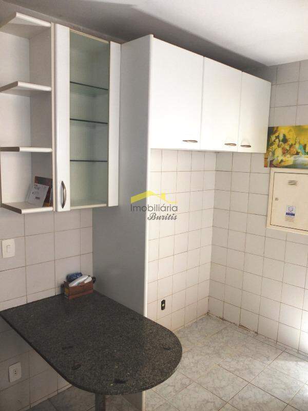 Cozinha ampla com piso em cerâmica, armários sob e sobre bancada em granito;