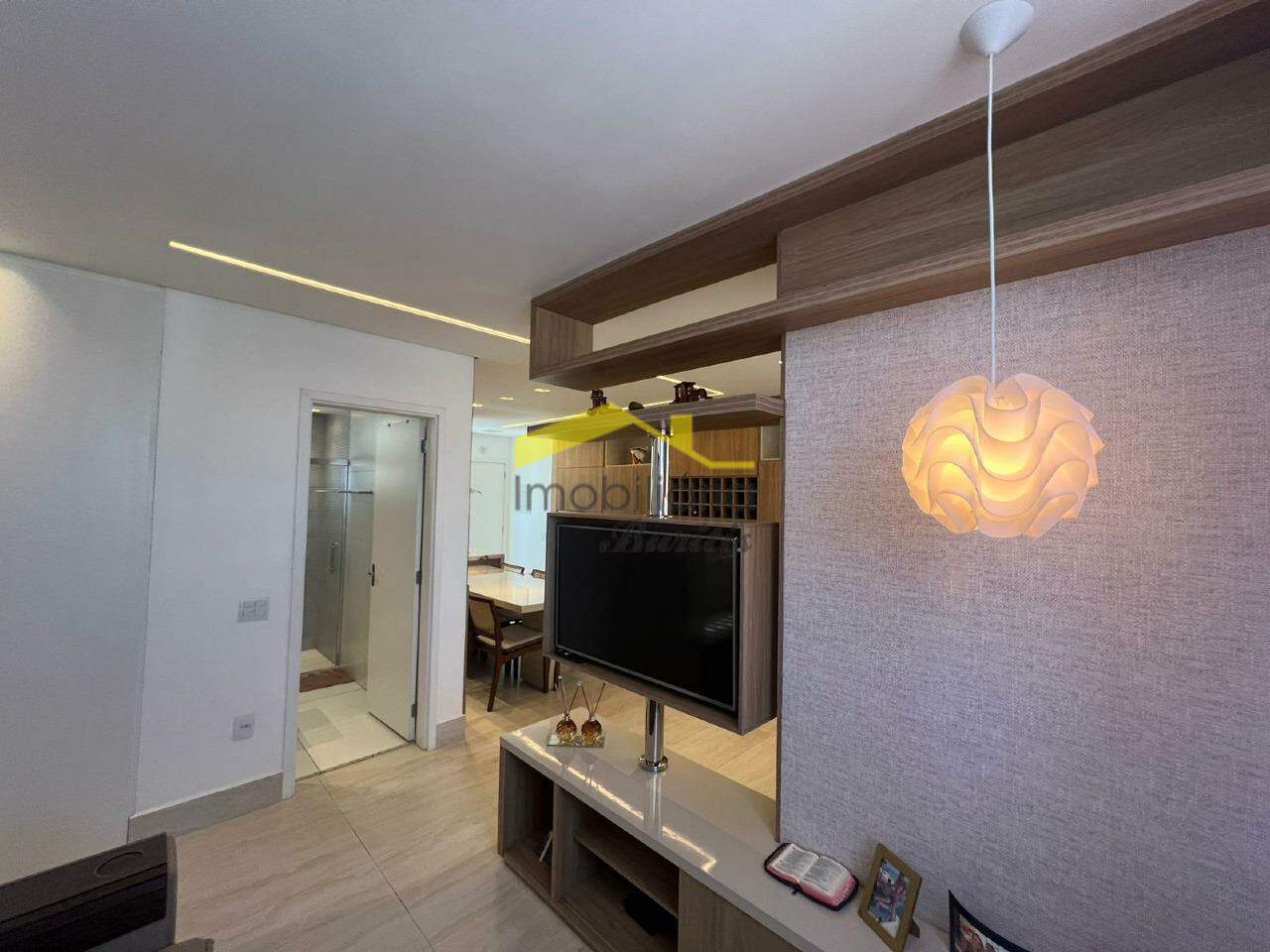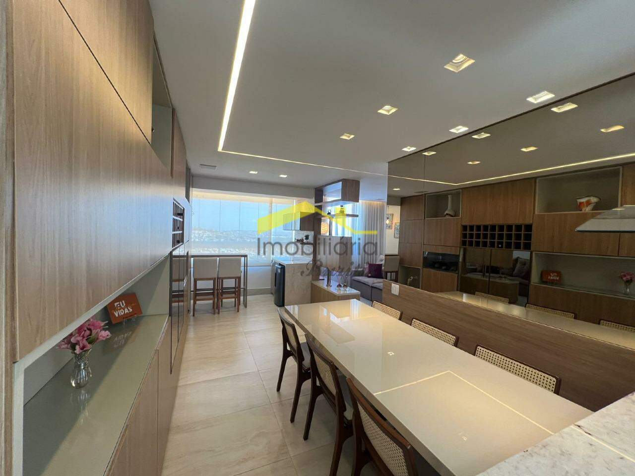 Apartamento 03 quartos sendo 01 suíte e 01 incorporado a sala; todos os quartos com piso em laminado, teto rebaixado em gesso, iluminação planejada; banho social e suíte com piso em porcelanato, teto rebaixado em gesso, iluminação planejada; sala para 03 ambientes com piso em porcelanato, teto rebaixado em gesso, iluminação planejada; cozinha americana com piso em porcelanato, bancada em granito, armários planejados; área de serviço.