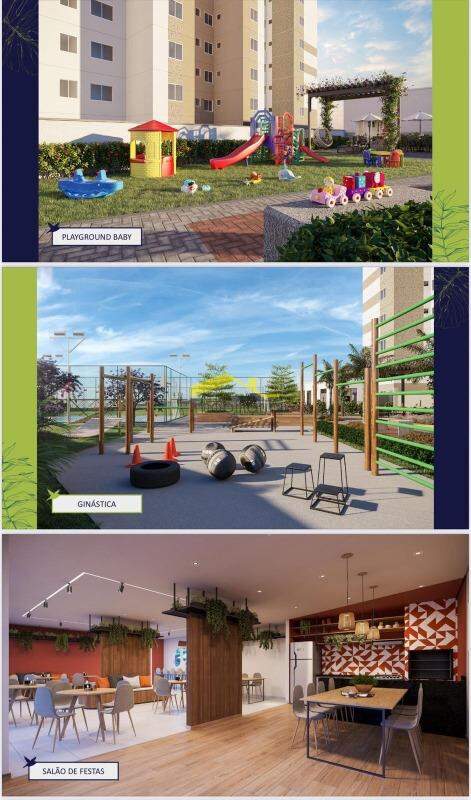Imóvel com 67,40 m² muito bem distribuídos: são 3 quartos, sendo 1 com suíte, sala ampla para dois ambientes, cozinha funcional e área de serviço. O condomínio oferece estrutura completa de lazer, com piscina, salão de festas, quadra, playground e portaria, garantindo segurança e conforto para toda a família.
