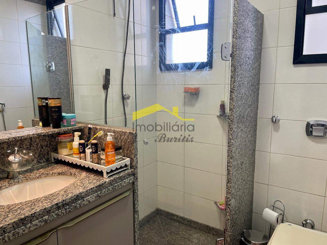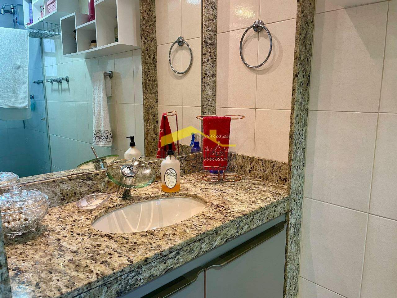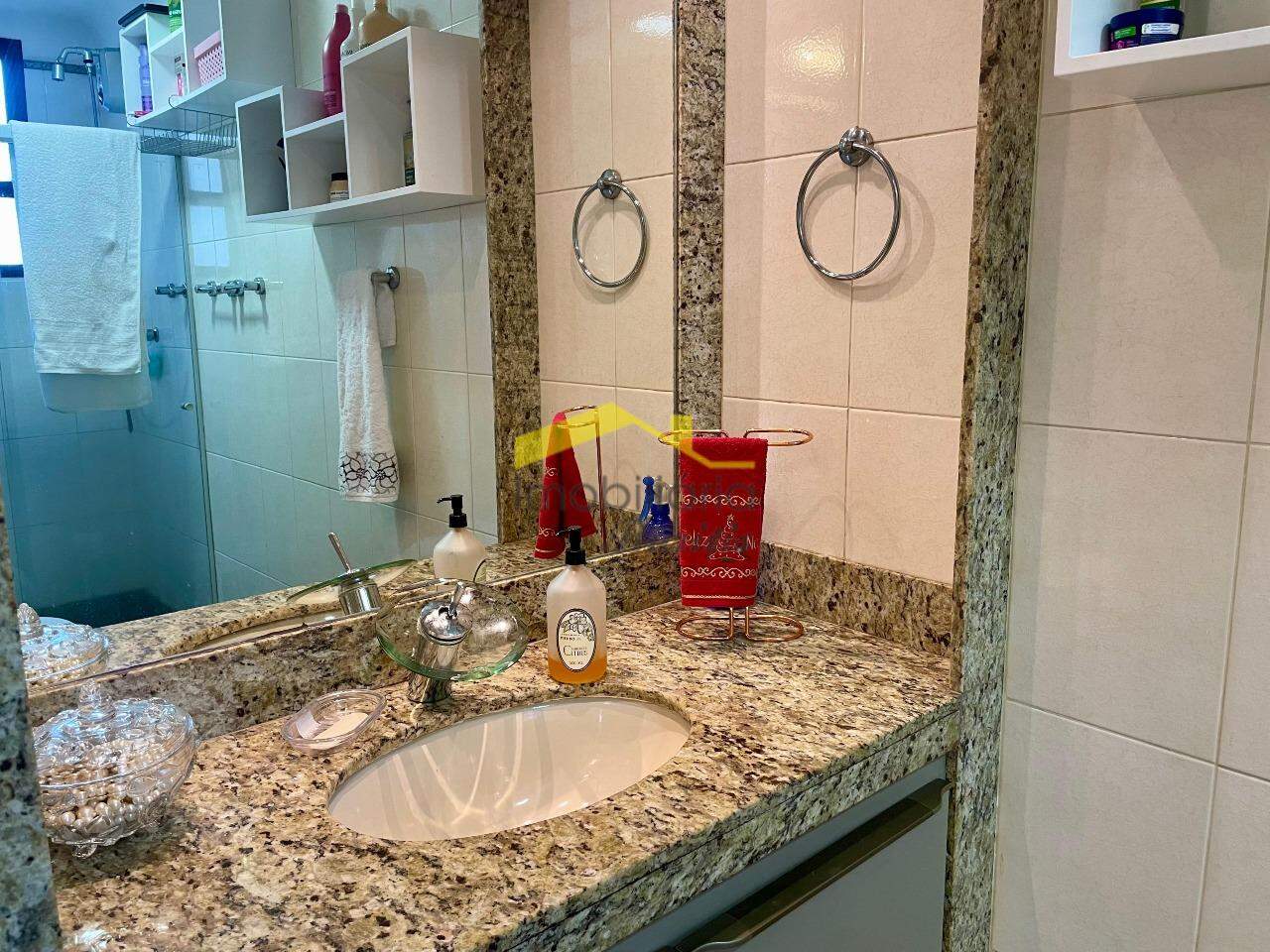 Banheiros: Revestidos em granito, armários sob a pia, box em vidro e ventilação natural.