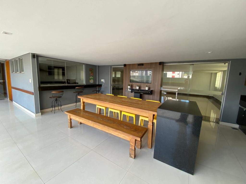 Apartamento 03 quartos sendo 01 suíte, todos os quartos com piso em laminado, armários, teto rebaixado em gesso, iluminação planejada; banho social e suíte com piso em porcelanato, bancada em granito, armários, teto rebaixado com iluminação planejada; sala para 03 ambientes com piso em porcelanato, teto rebaixado em gesso, iluminação planejada, varanda gourmet com vista definitiva; cozinha com piso em porcelanato, bancada em granito, armários; área de serviço; banho de empregada.