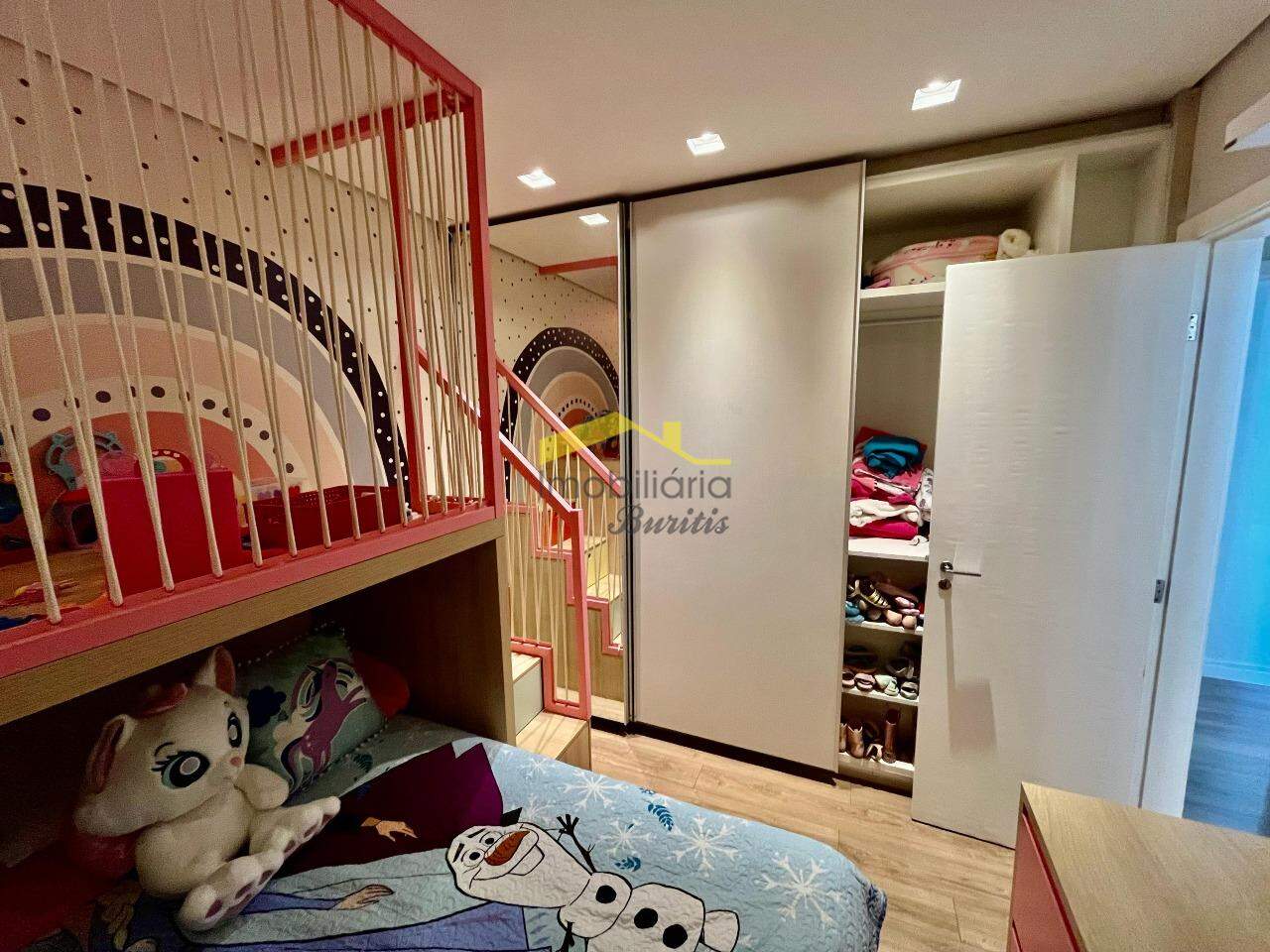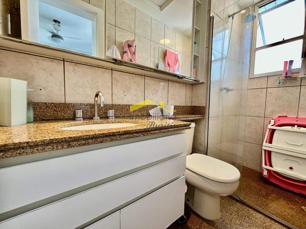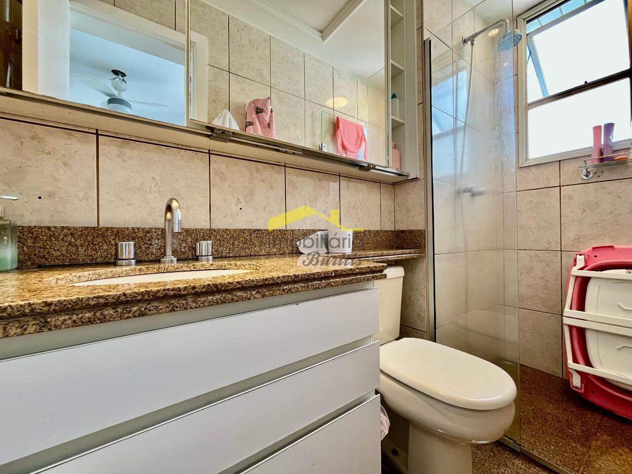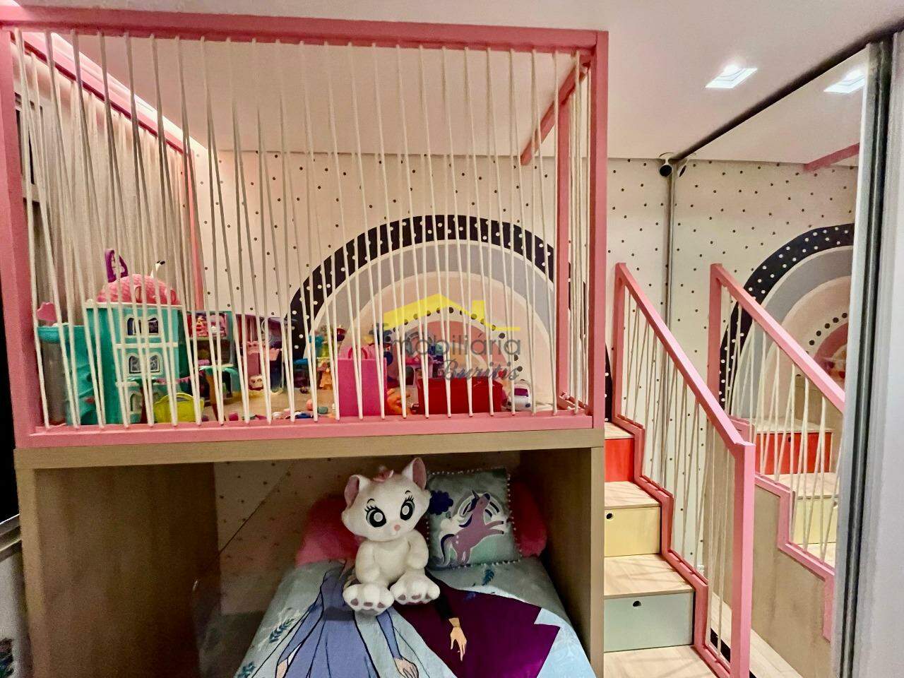 São três quartos com armários, incluindo uma suíte com closet, garantindo conforto e privacidade. Os banheiros possuem armários, espelhos e **box em vidro temperado**.