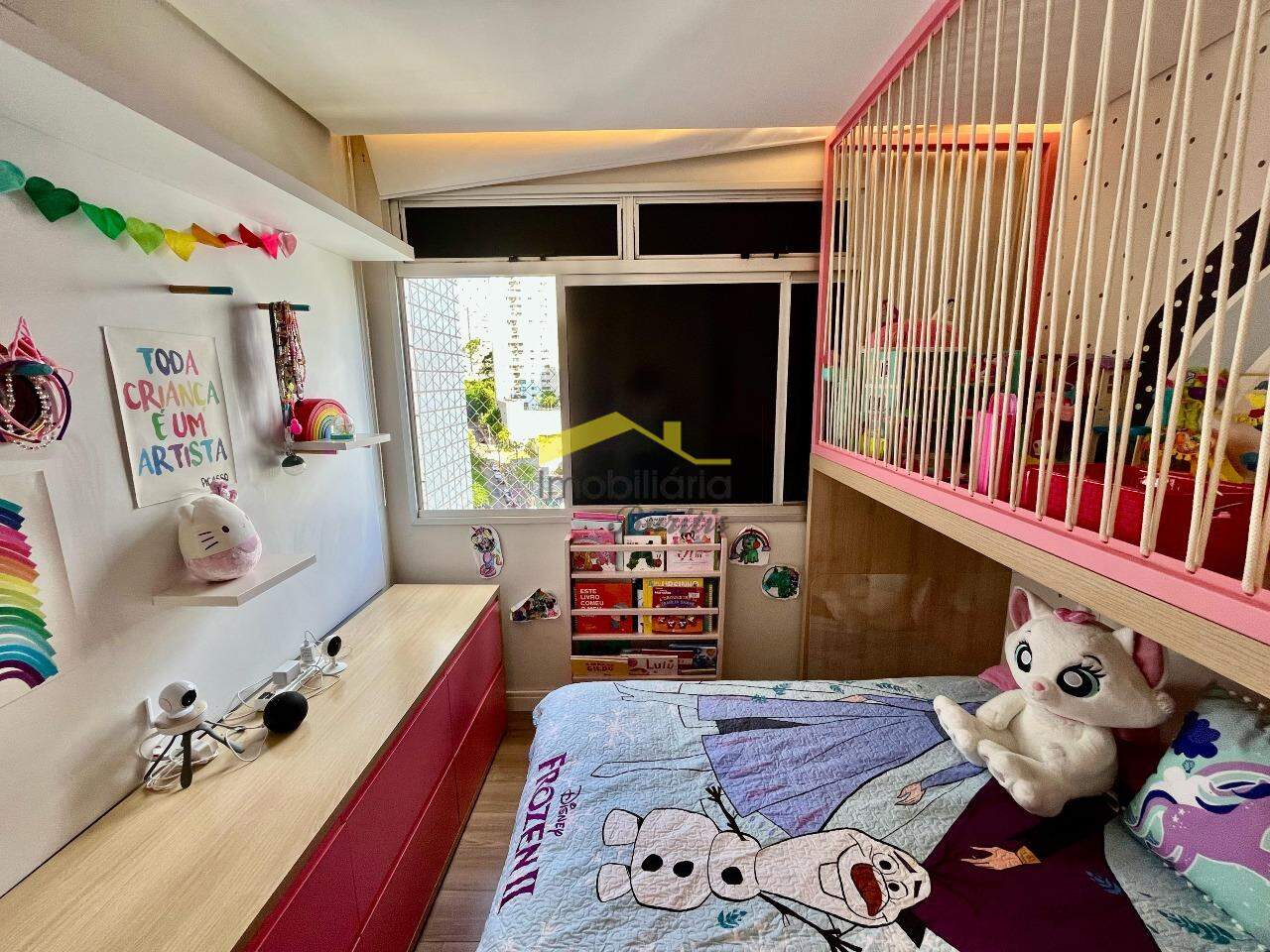 O imóvel dispõe de uma sala espaçosa para dois ambientes, com iluminação planejada e varanda integrada, proporcionando um ambiente sofisticado e aconchegante.
