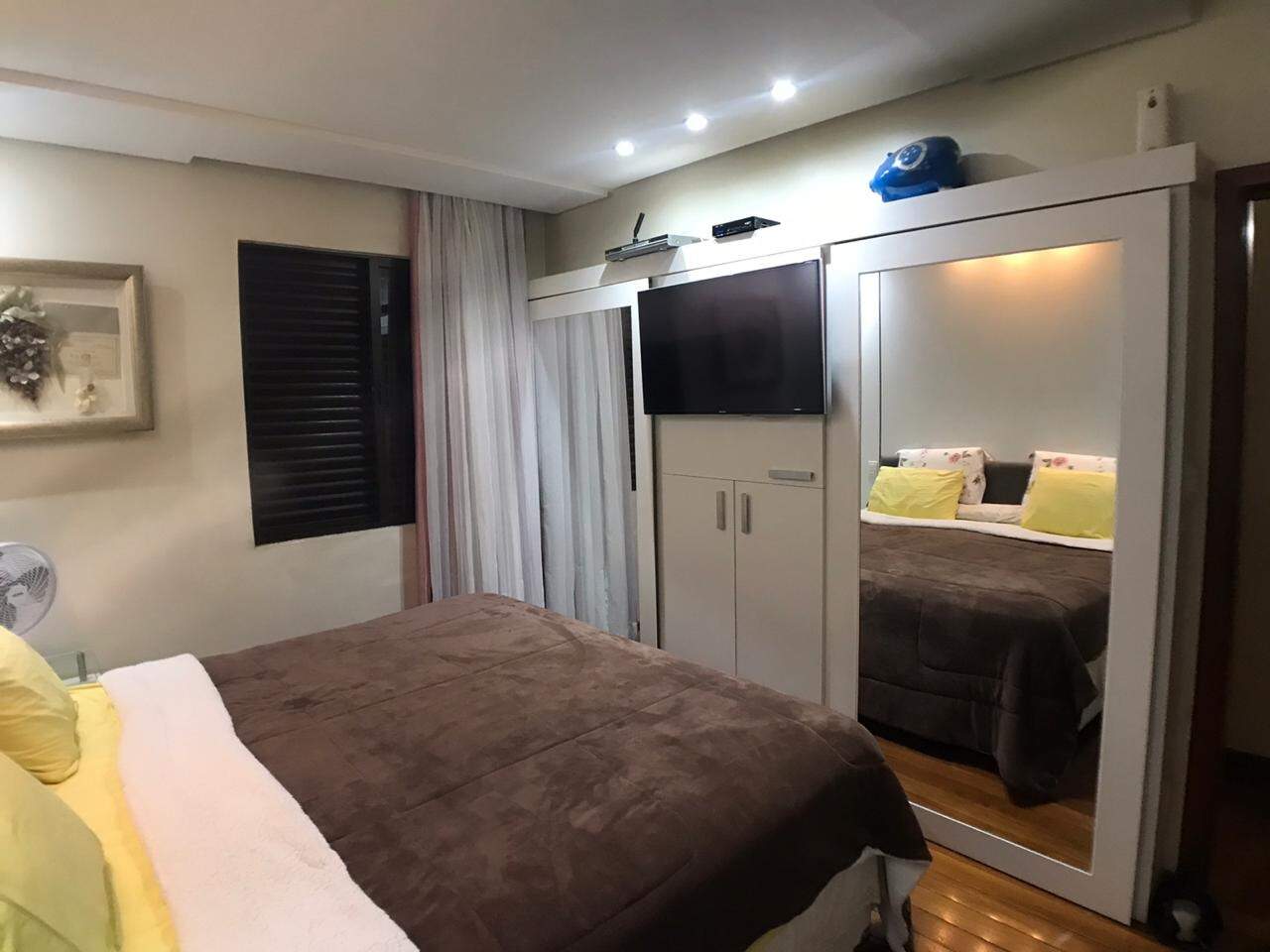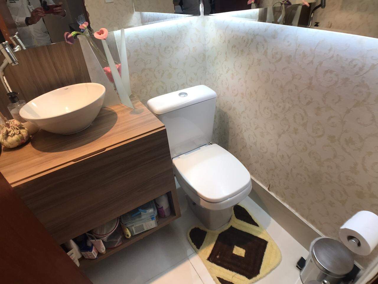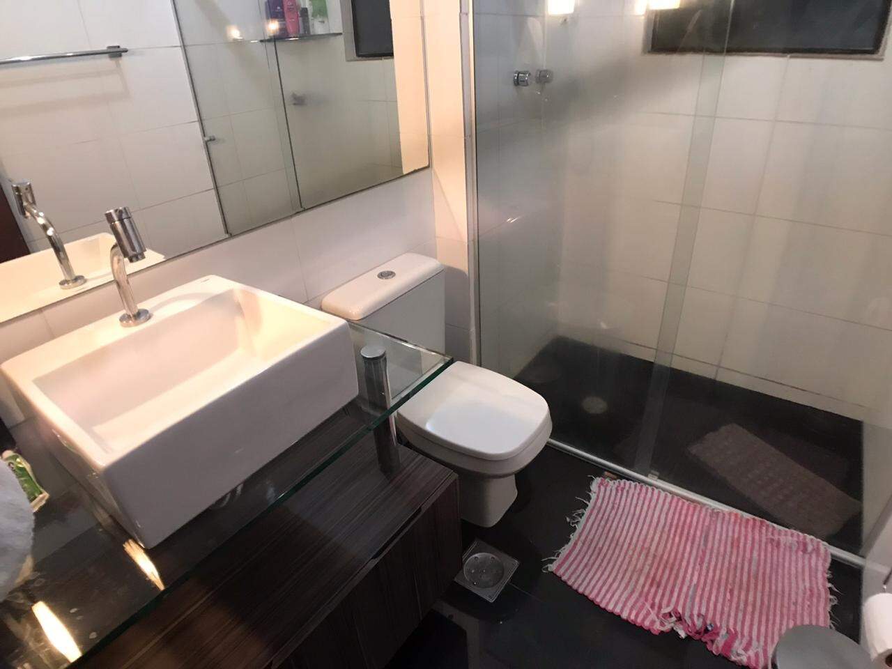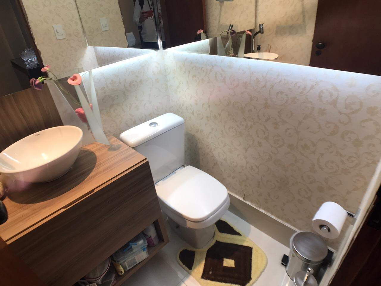 Apartamento 04 quartos sendo 01 suíte, todos os quartos com piso em tabua corrida, armários planejados; banho social e suíte com piso em cerâmica, bancada em granito, blindex; sala para 02 ambientes com piso em tabua corrida, teto rebaixado em gesso, iluminação planejada, lavabo, varanda; cozinha com piso em cerâmica, bancada em granito, armários; área de serviço; DCE.