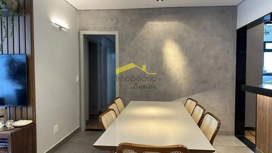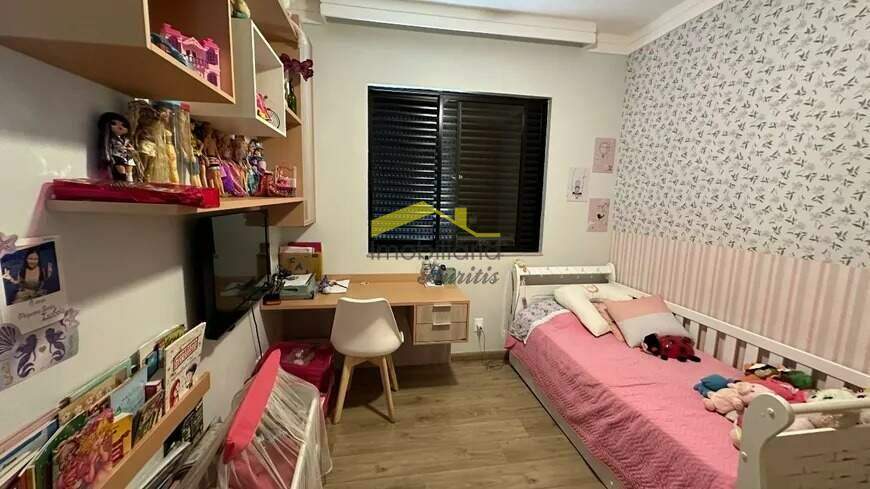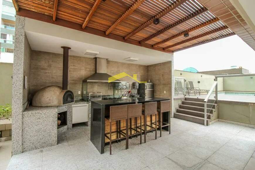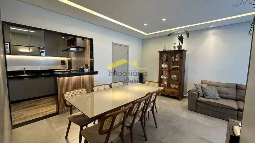 Quatro quartos, sendo uma suíte. Uma sala para dois ambientes, com iluminação planejada e varanda incorporada. Três banheiros. Cozinha montada com armários e bancada em granito. Área de serviço com armários e banheiro de serviço. Piso em mármore e tábua corrida. Duas vagas de garagem, em linha e cobertas. Box de despejo. Prédio com lazer, piscina, elevador, salão de festas e espaço gourmet, espaço kids e quadra de futsal.