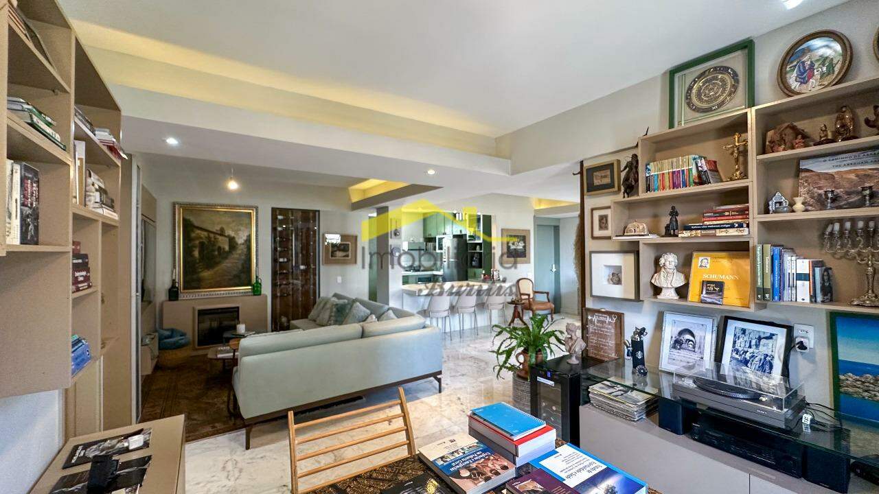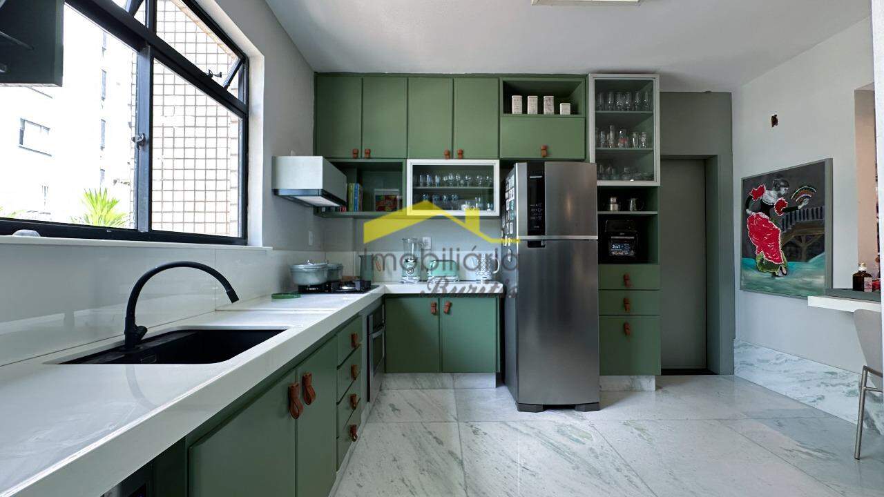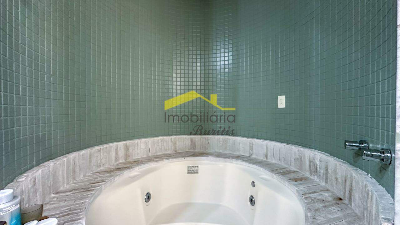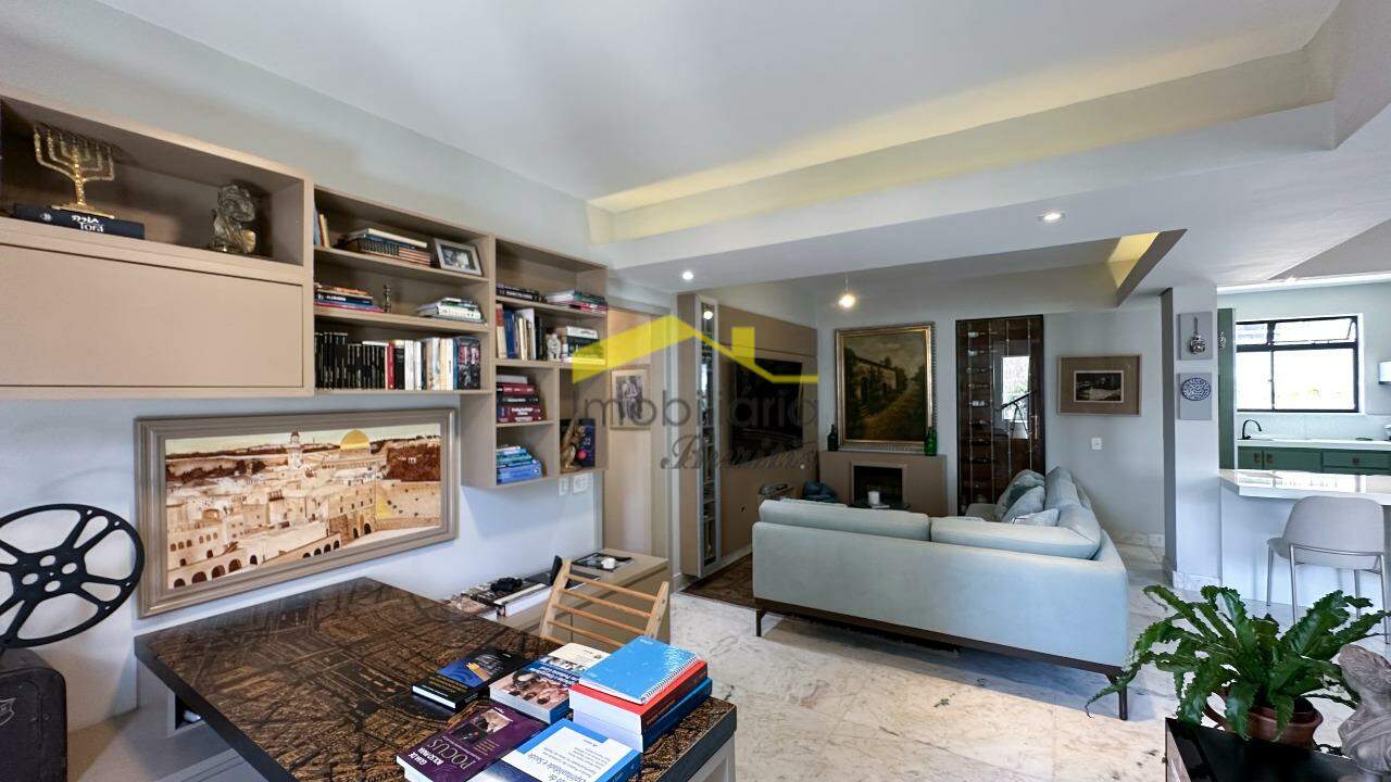 A sala é ampla, para 3 ambientes, com piso em mármore, rebaixamento em gesso e projeto luminotécnico que valoriza cada detalhe. Banho social e suíte com acabamento em mármore, armários, box em blindex e banheira de hidromassagem na suíte.