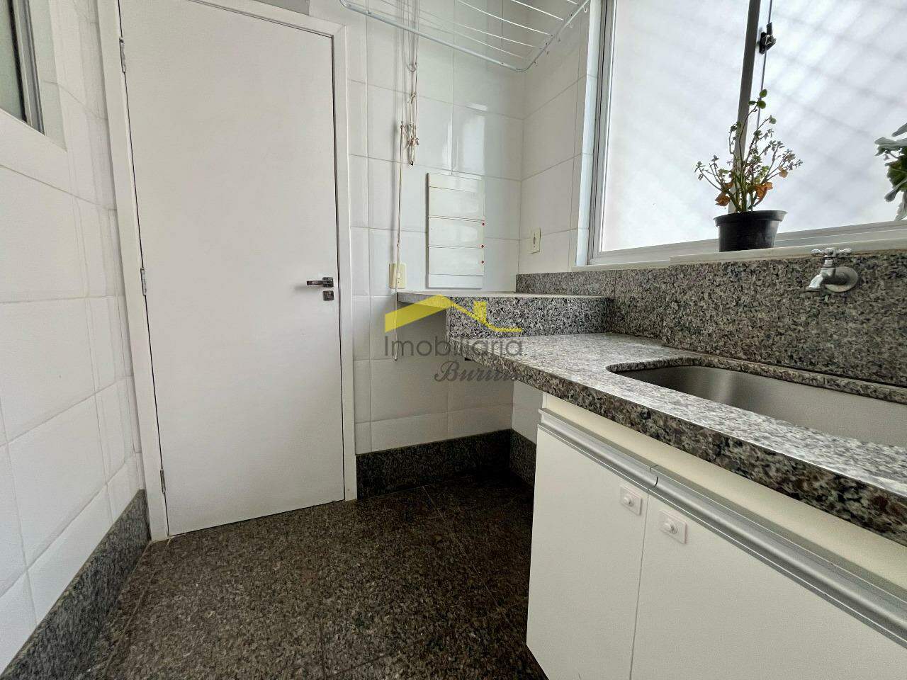 Sala para 3 ambientes em porcelanato. Varanda em porcelanato com fechamento em cortina de vidro. 4 quartos em laminado de madeira com armários, sendo 1 suíte com ar condicionado. (transformado em 3 quartos). Banheiros suíte e social em granito com bancadas em granito, armários, box em vidro temperado e espelho. Cozinha em granito com bancada em granito e armários planejados. Área de serviço em granito com bancadas em granito. Área de serviço em granito com bancada em granito. Banheiro de empregada.