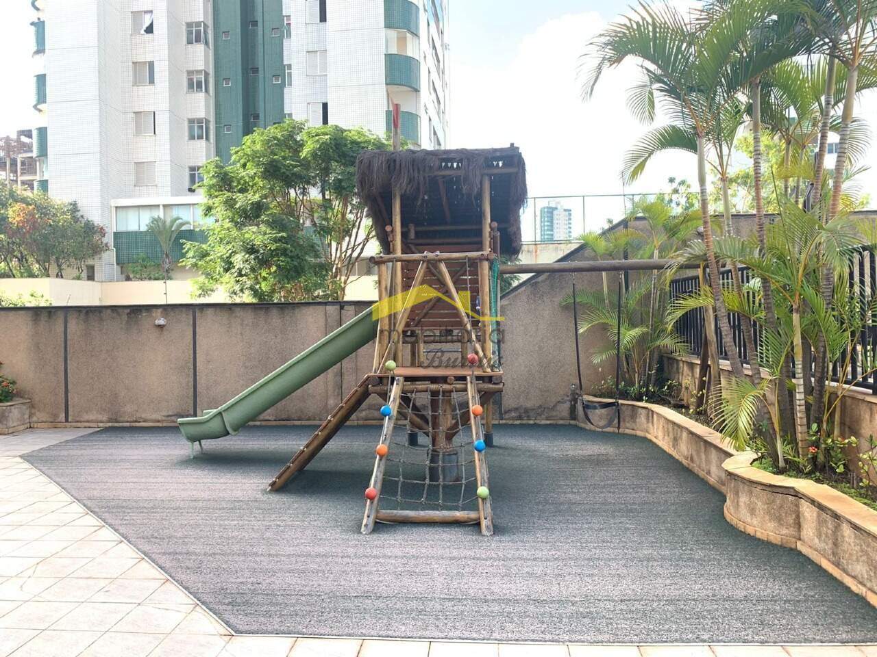 Sala ampla para dois ambientes com varanda. Área de circulação com rouparia. Quatros quartos, sendo um suíte com armários planejados. Banho social. Cozinha montada com armários e bancada em granito. Área de serviço com DCE. Piso em porcelanato.