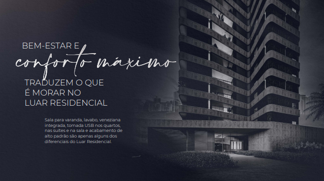 Arquitetura inteligente, acabamentos diferenciados, lazer completo e localização extraordinária fazem do Luar Residencial o local perfeito para dar início a uma nova fase em sua vida: a mais nobre de todas.