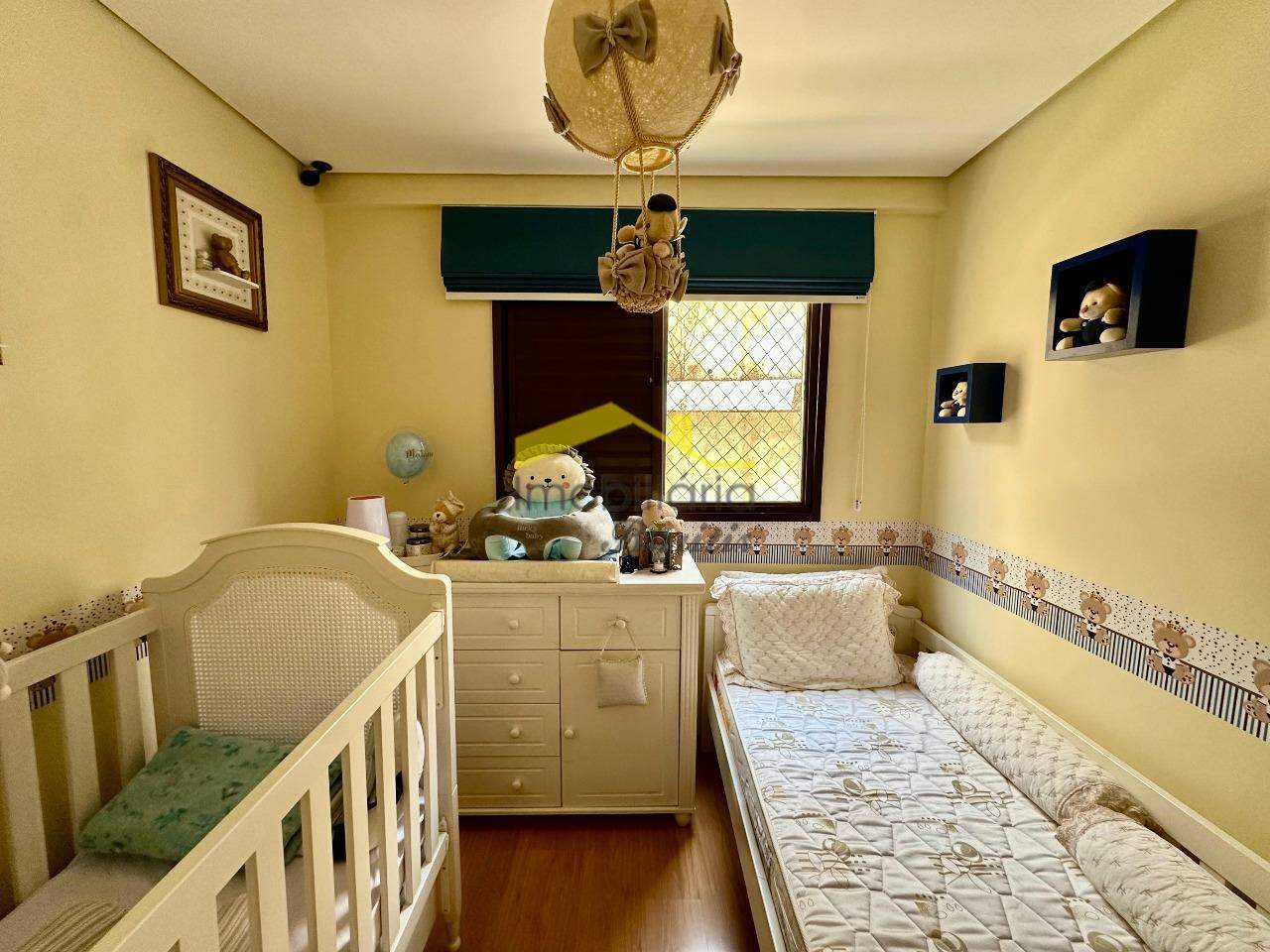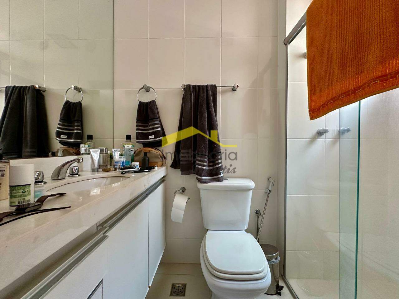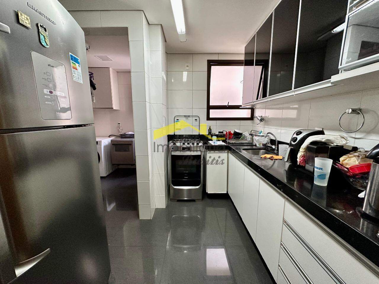 A ampla sala acomoda dois ambientes e se conecta a uma varanda gourmet, ideal para momentos de lazer. O imóvel também dispõe de lavabo, cozinha marcante, área de serviço e um quarto de empregada.