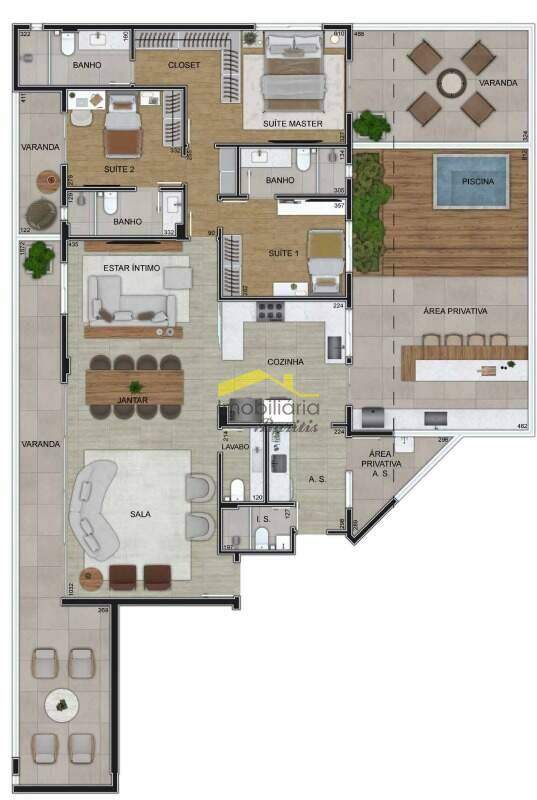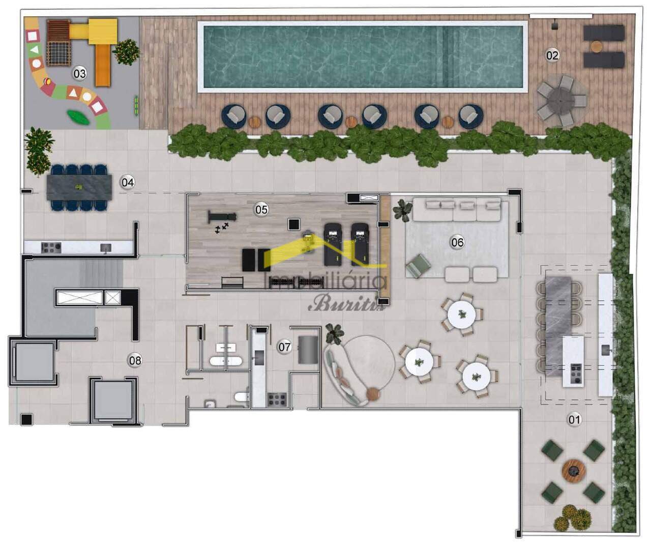Área de lazer com espaço fitness, piscina com praia, salão de festas, playground e 2 áreas gourmet.