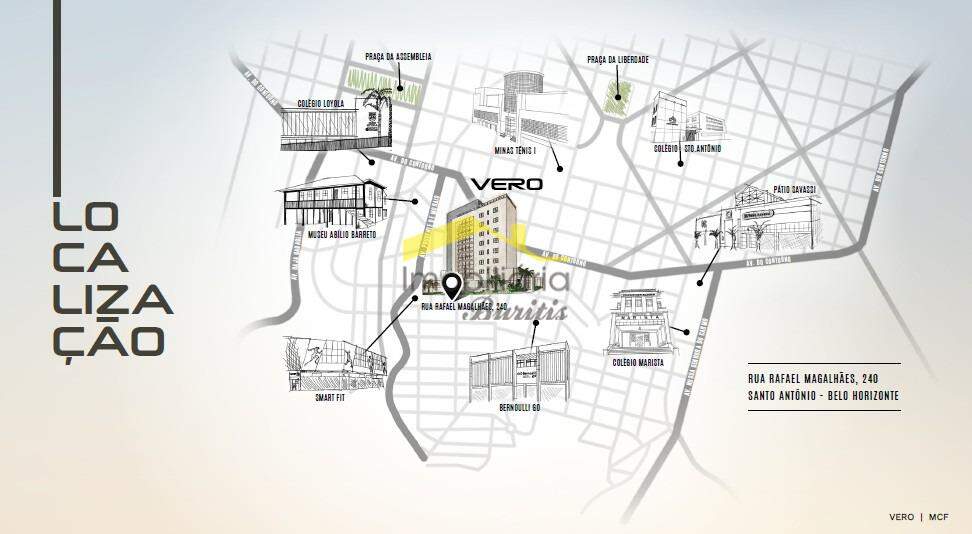 Localizado em rua plana, no endereço mais valorizado do bairro Santo Antônio, o Vero está a apenas 200 metros da Av. Prudente de Morais, facilitando o acesso direto aos bairros Lourdes e Cidade Jardim, reconhecidos pela excelente oferta de gastronomia, lazer, cultura e serviços essenciais.