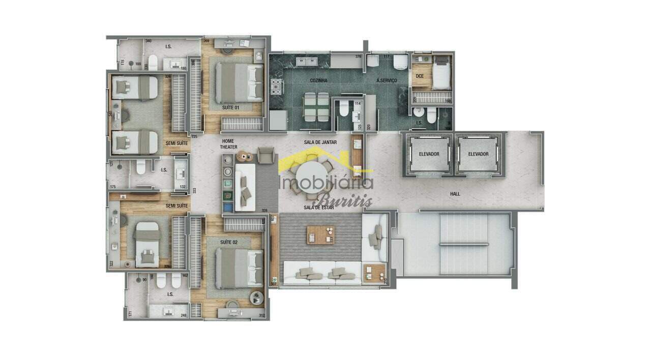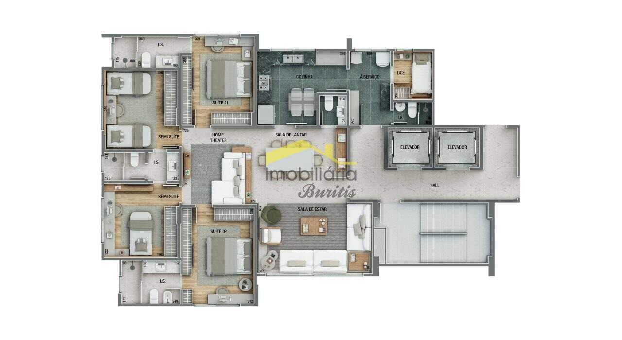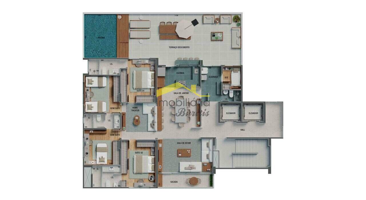 Nesse empreendimento de luxo com apartamentos de 140 m² você contará também com acabamento em mármore travertino, espaço pet,