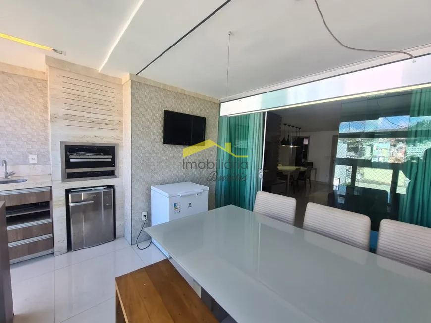 Sala ampla para dois ambientes, sala de jantar e de tv. Varanda Gourmet espaçosa já equipada com churrasqueira e uma linda vista definitiva. Cozinha completa com armários e bancada, DCE e área de serviço independente. 4 vagas de garagem cobertas.