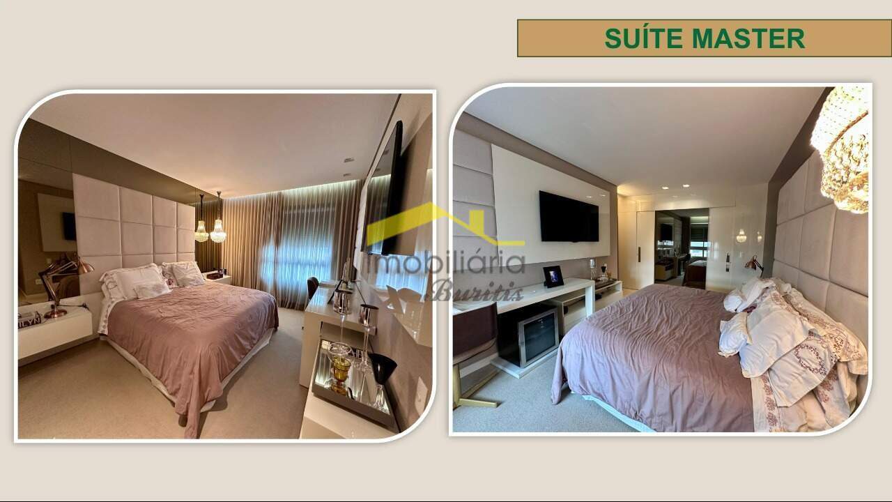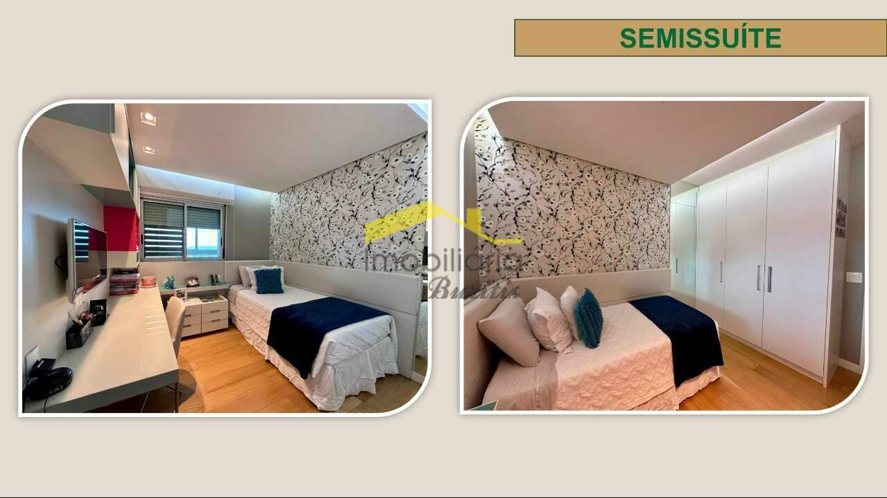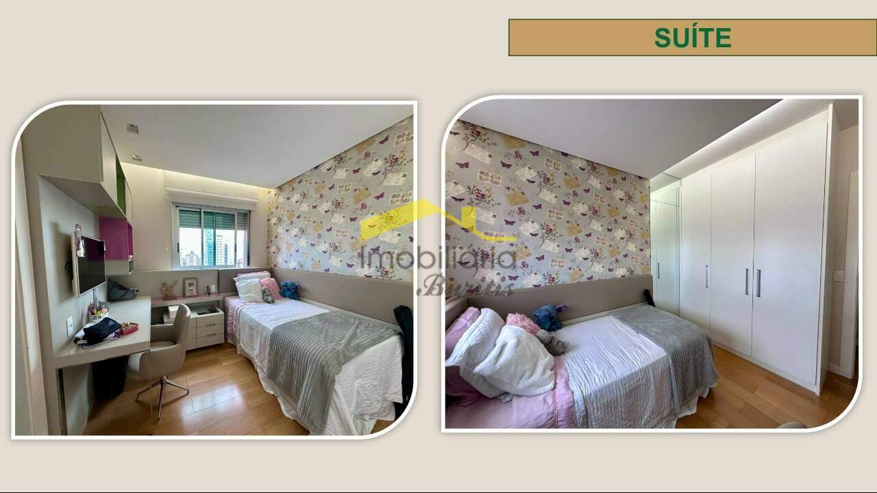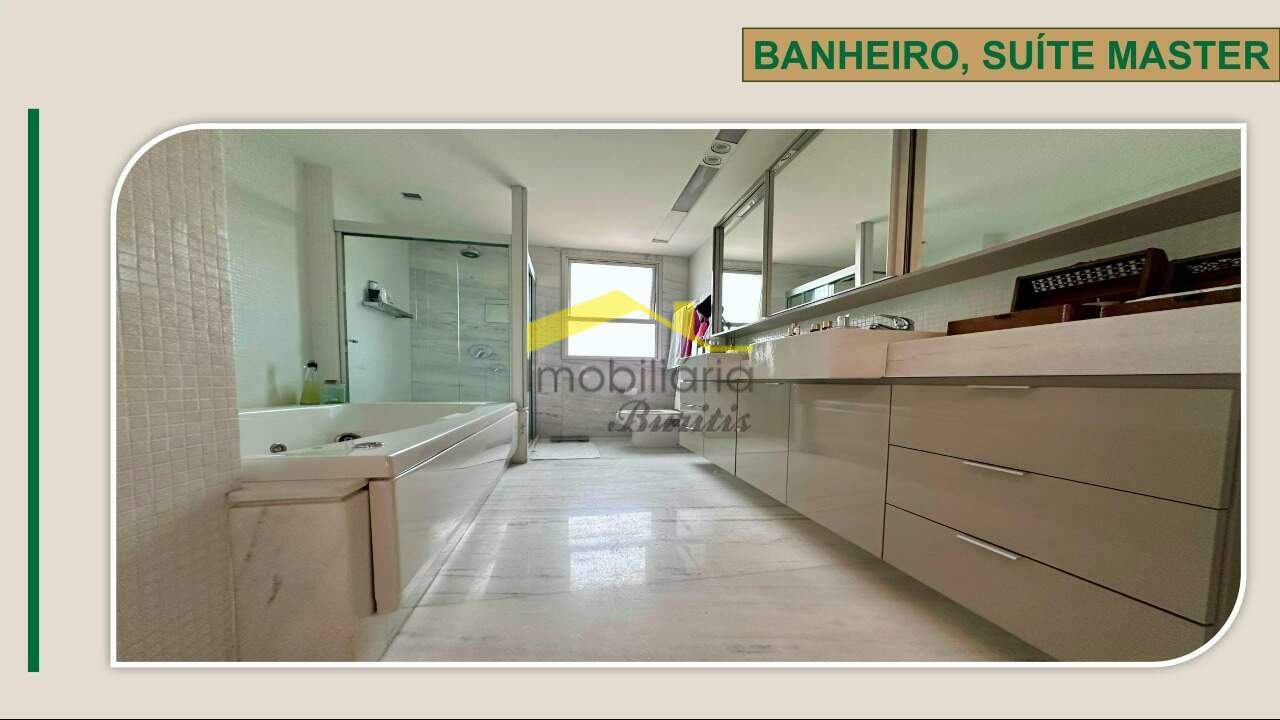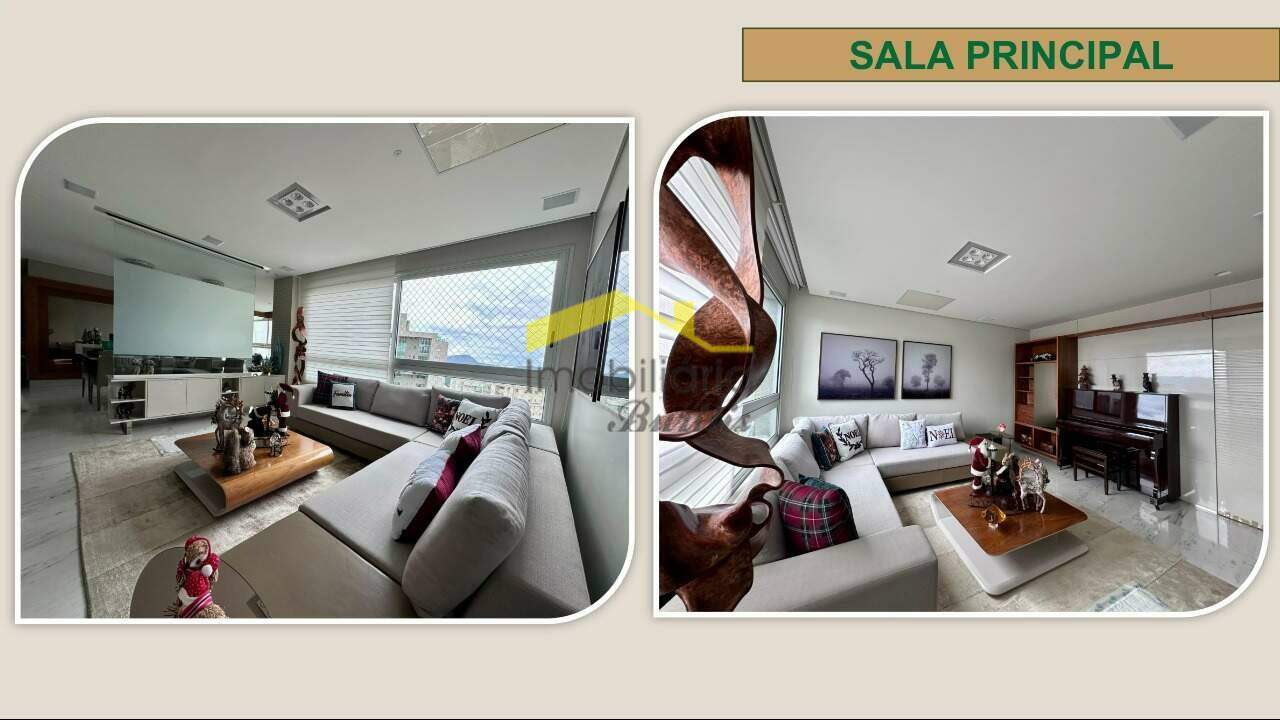 Acabamentos de Alto Padrão: Mármore branco nas áreas sociais (sala, varanda, lavabo e hall), granito preto na cozinha e área de serviço, e piso de madeira laminada nos dormitórios e closet.