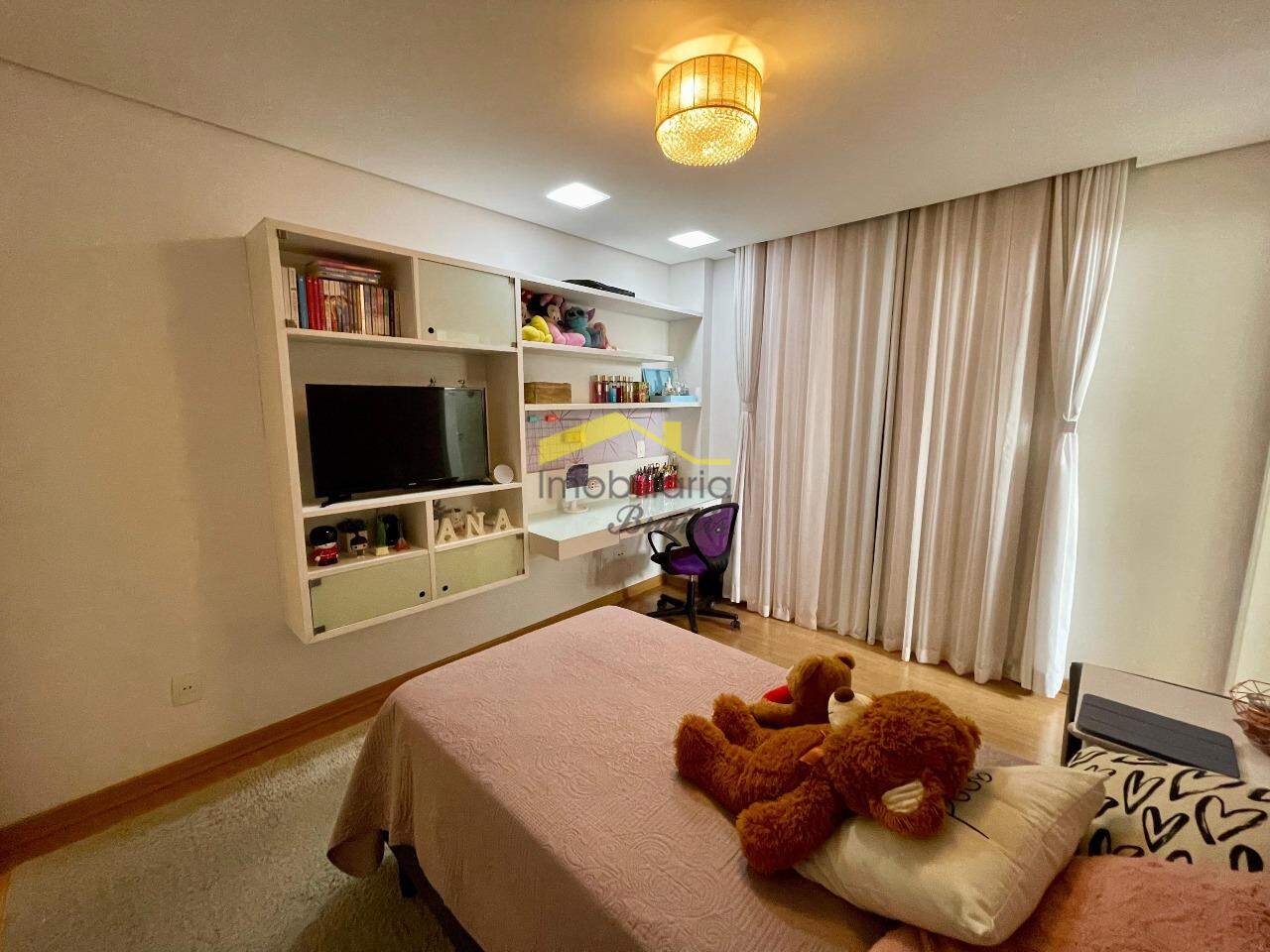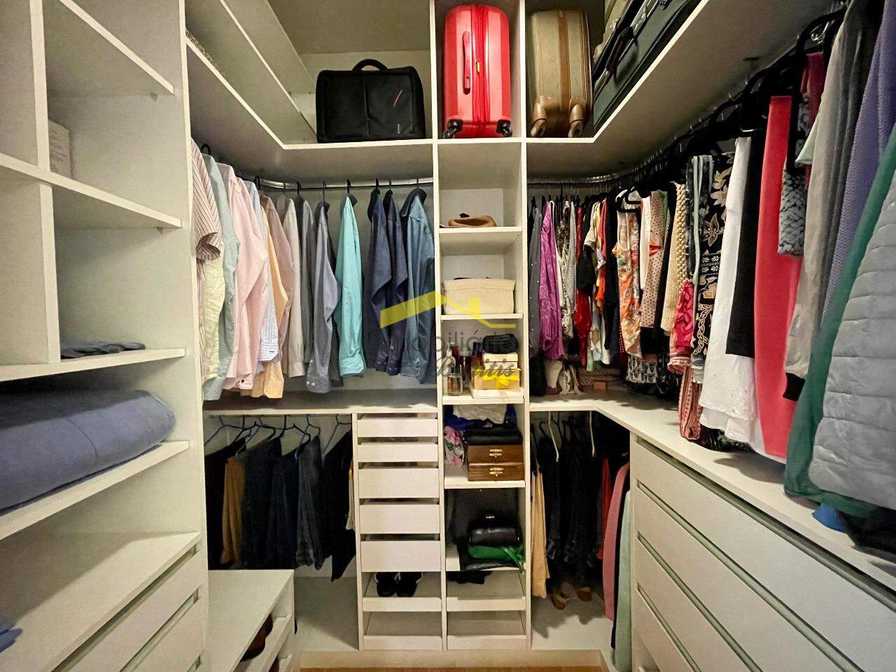 Quartos: 4 suítes, incluindo suíte master com closet e varanda; todos os quartos possuem piso em laminado, armários planejados, teto rebaixado em gesso com iluminação planejada.