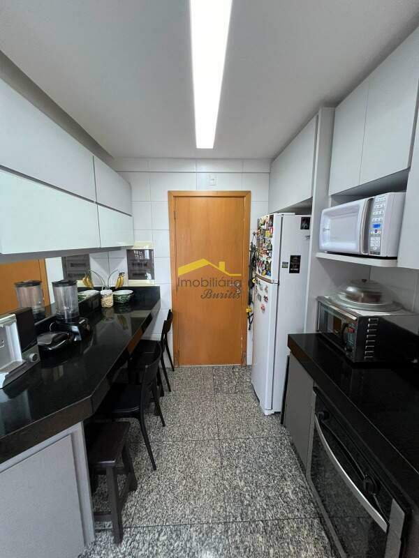 Cozinha rica em armários, bancadas e espelhos. Área de serviço com bancadas e granito.
