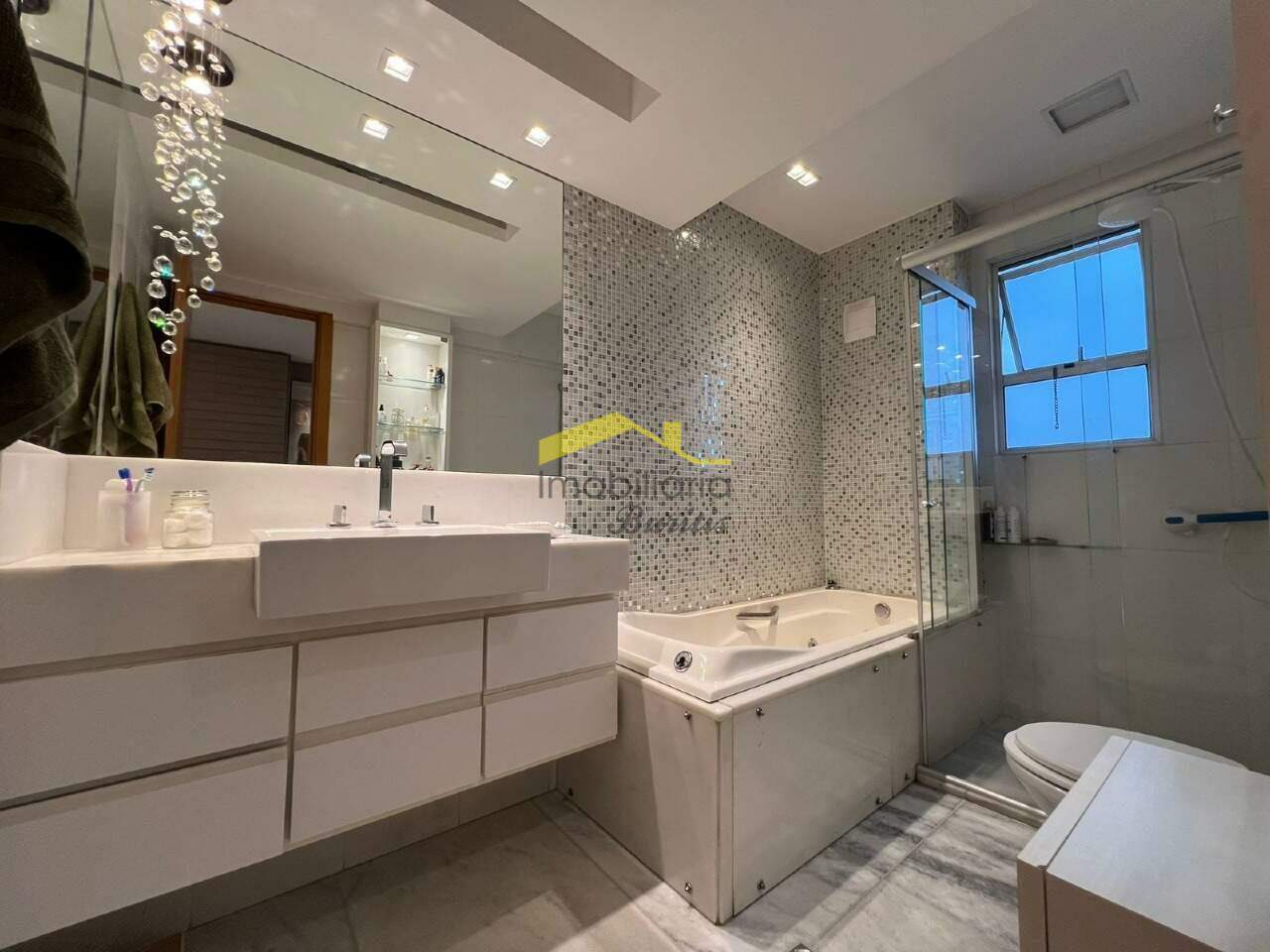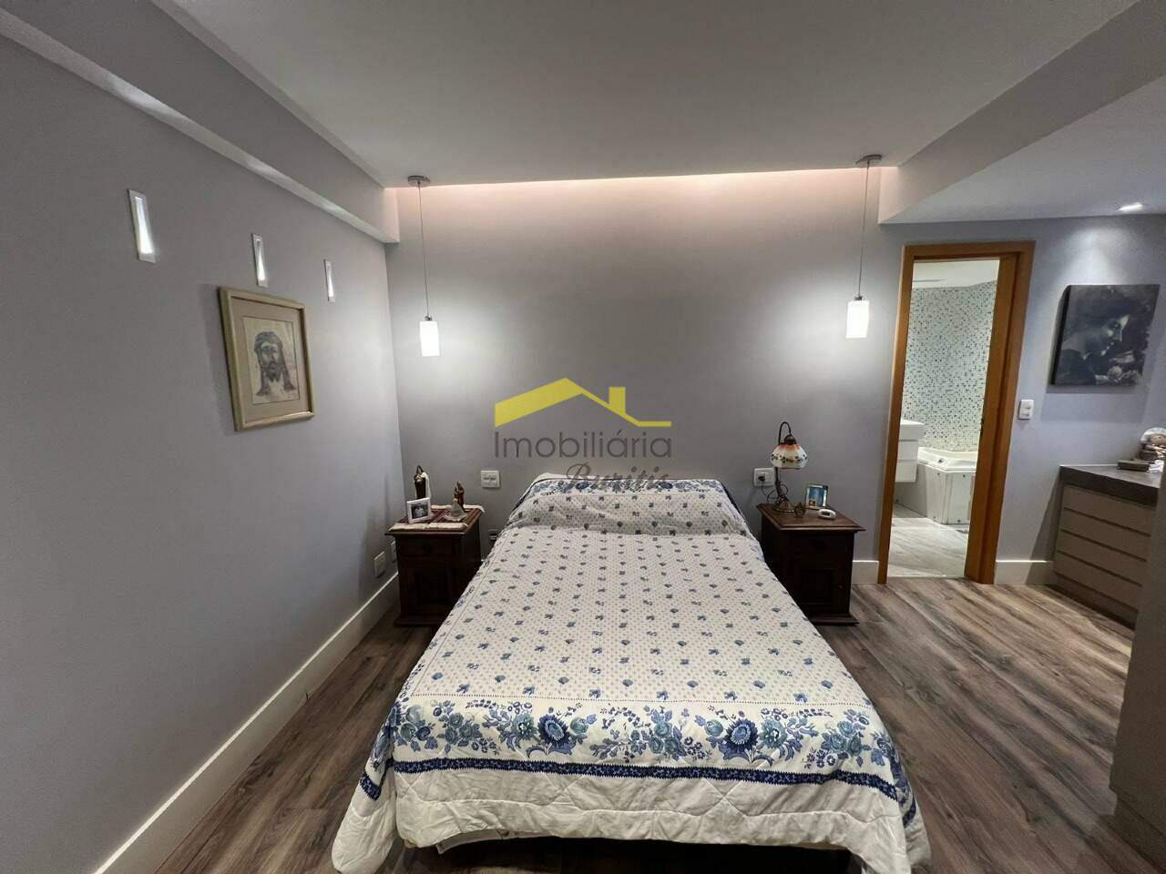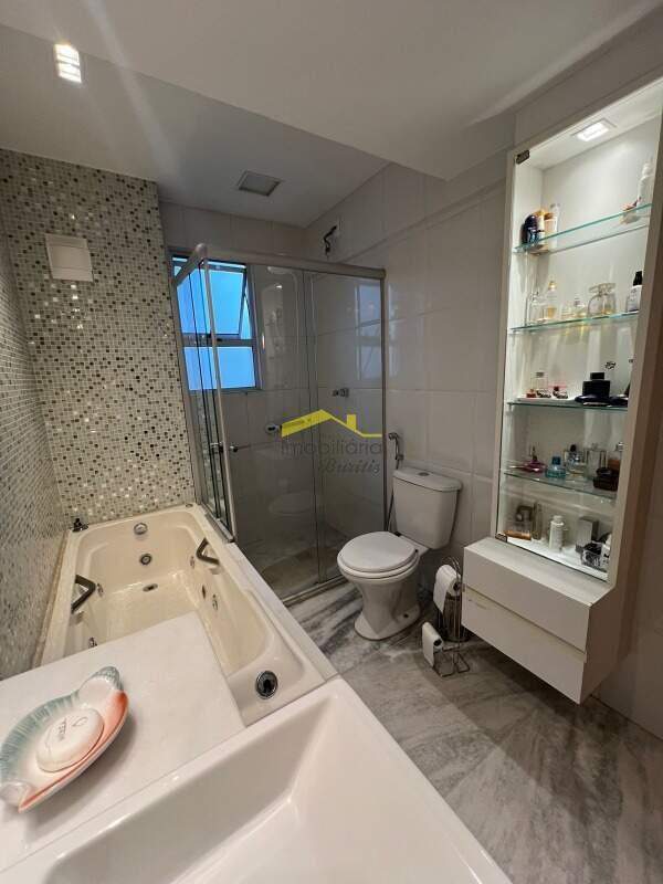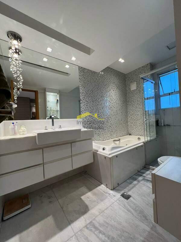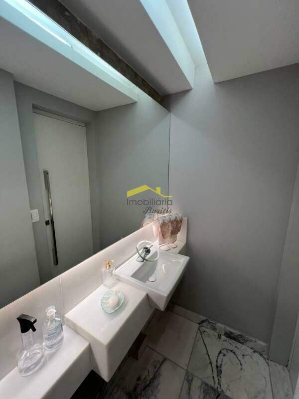 Cinco quartos, sendo duas suítes e duas semissuítes, cinco banheiros. Suíte master com banheira de hidromassagem.