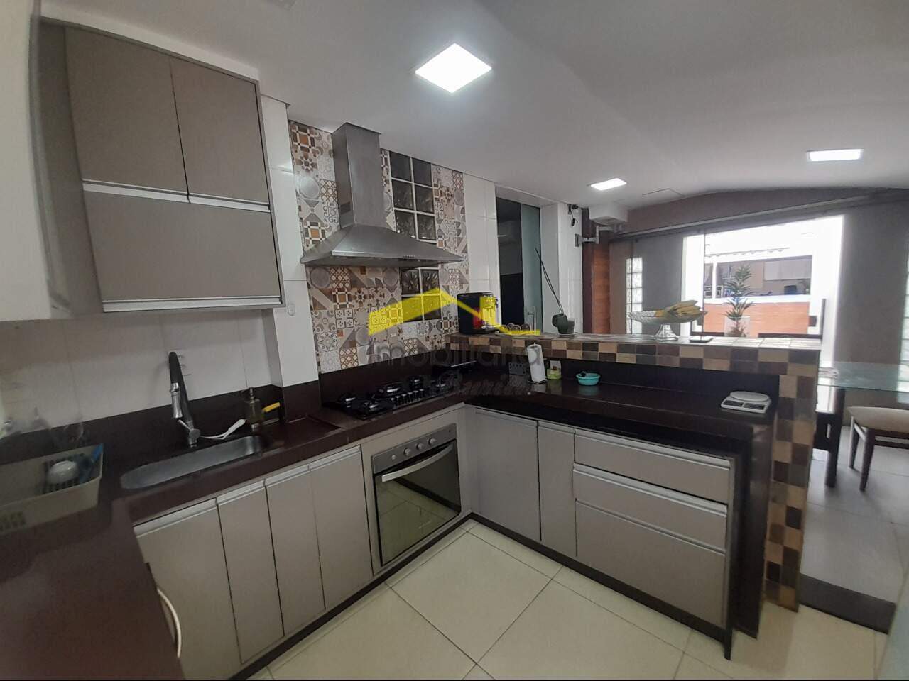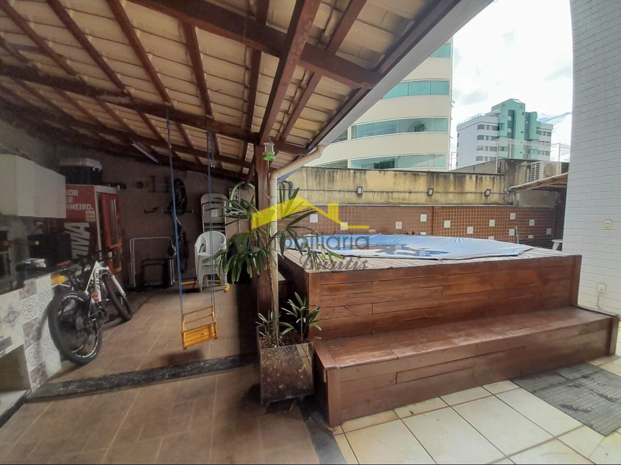 Sala para 02 ambientes, com piso laminado de madeira; 02 quartos com armários, banho com armário, box e espelho; cozinha com armários, espaço gourmet; área de serviço; quarto despejo; área externa ampla com churrasqueira; piscina; 01 vaga de garagem coberta e livre.