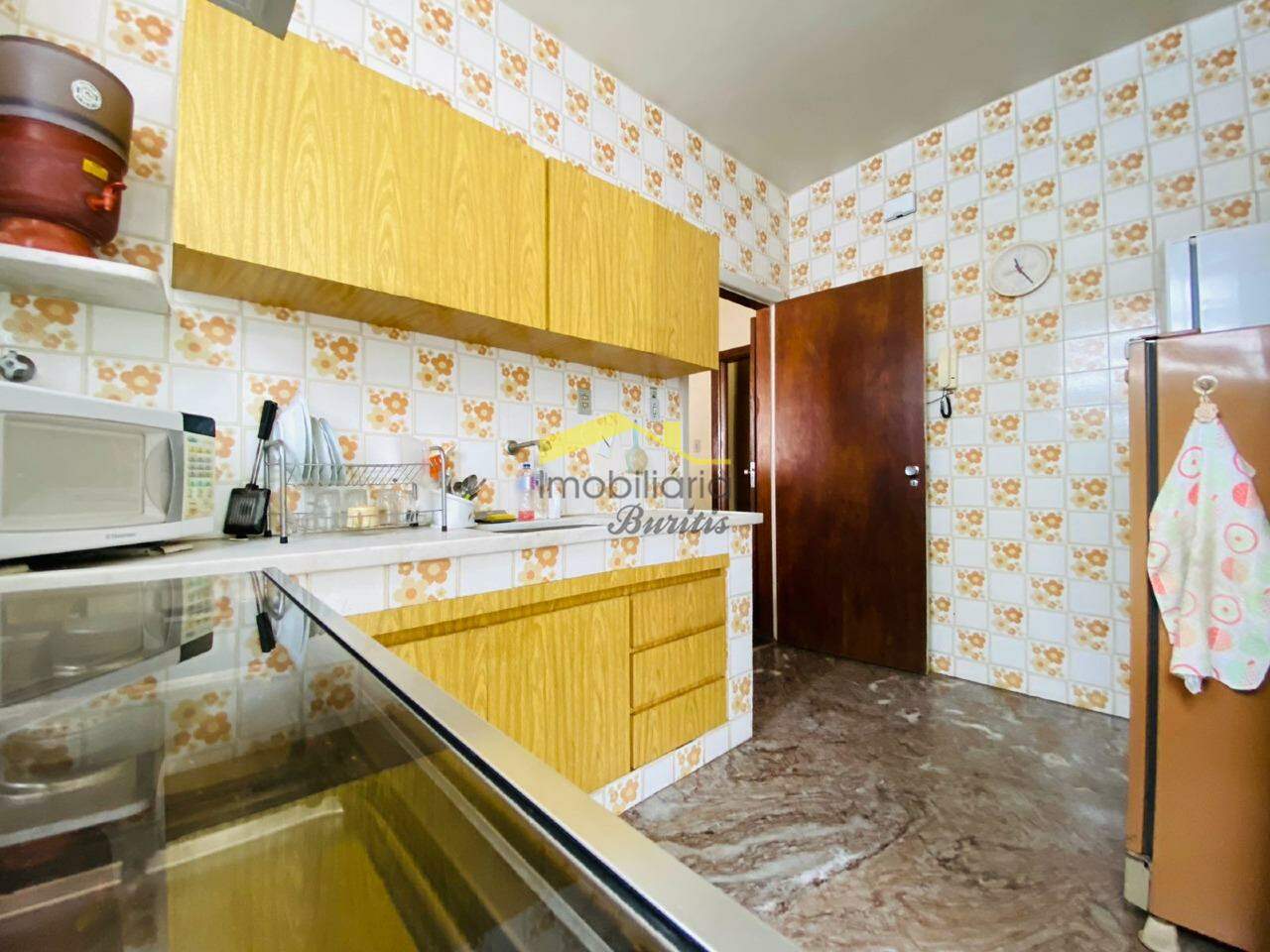 - Cozinha com piso e bancada em Mármore, armários planejados e revestimento em cerâmica;