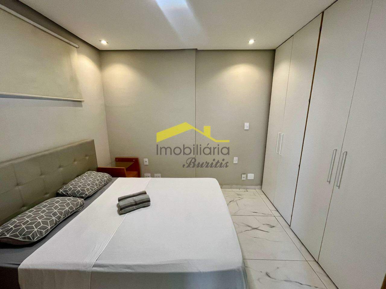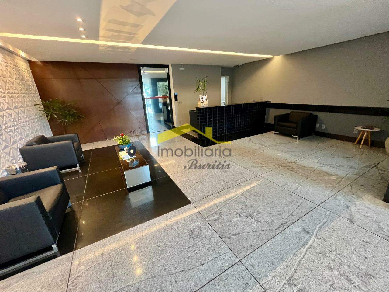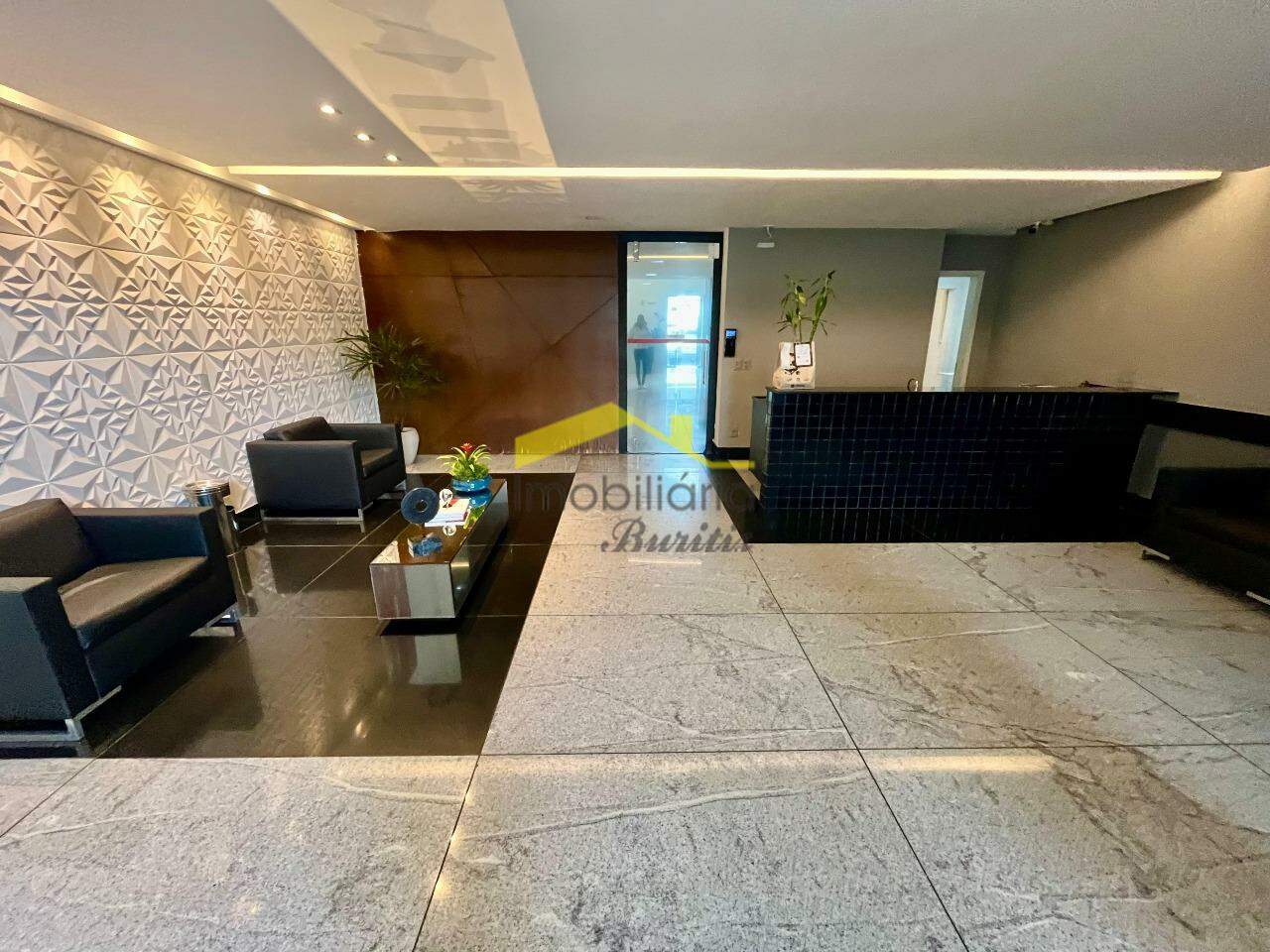 O imóvel possui sala ampla, com elegante piso em granito, iluminação planejada, rebaixamento em gesso e armários sob medida, além de ar-condicionado, proporcionando um ambiente sofisticado e aconchegante. O banheiro segue o mesmo padrão de qualidade, com bancada em granito, armário, box em blindex, espelho e piso em granito.