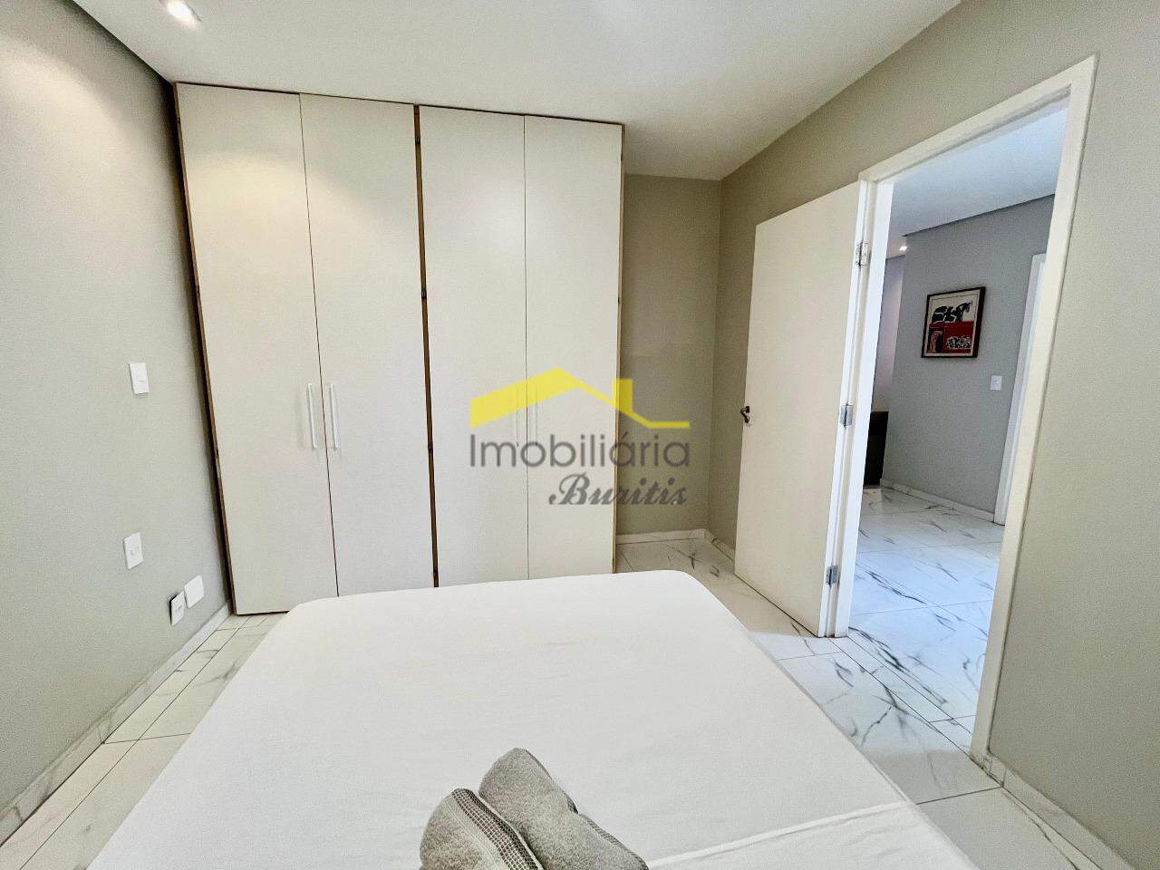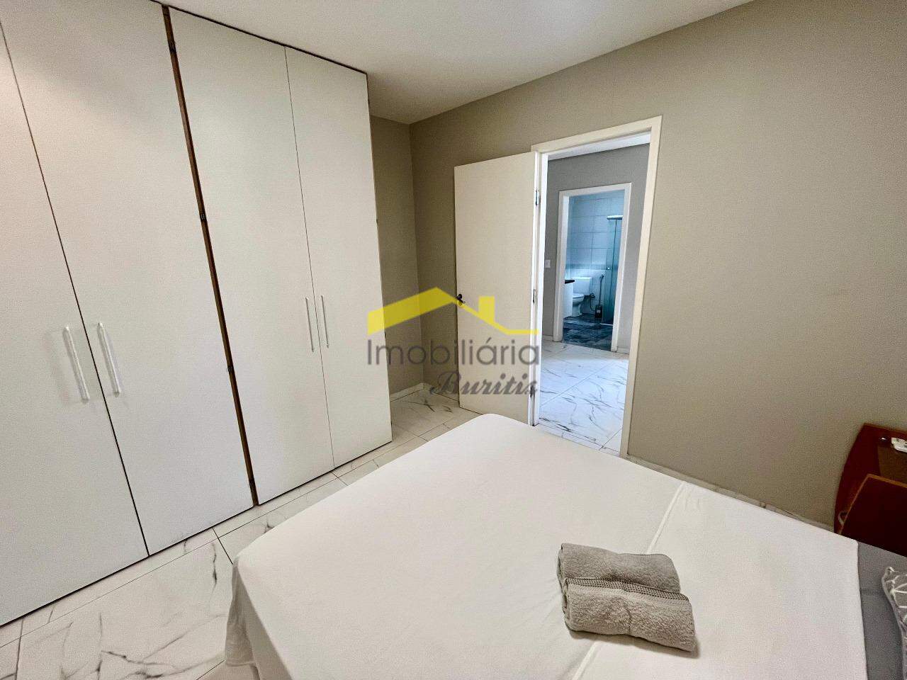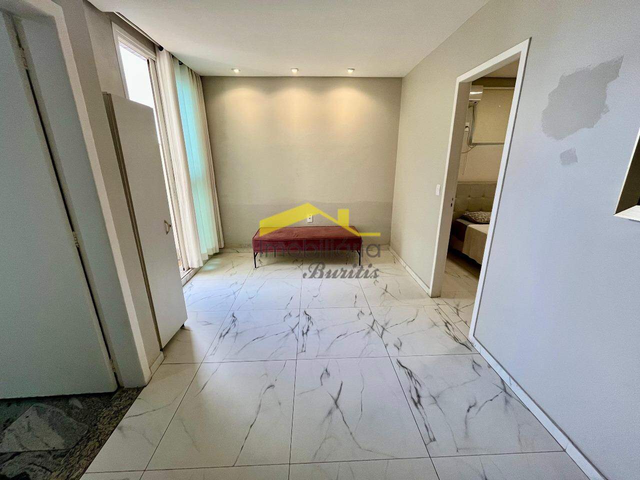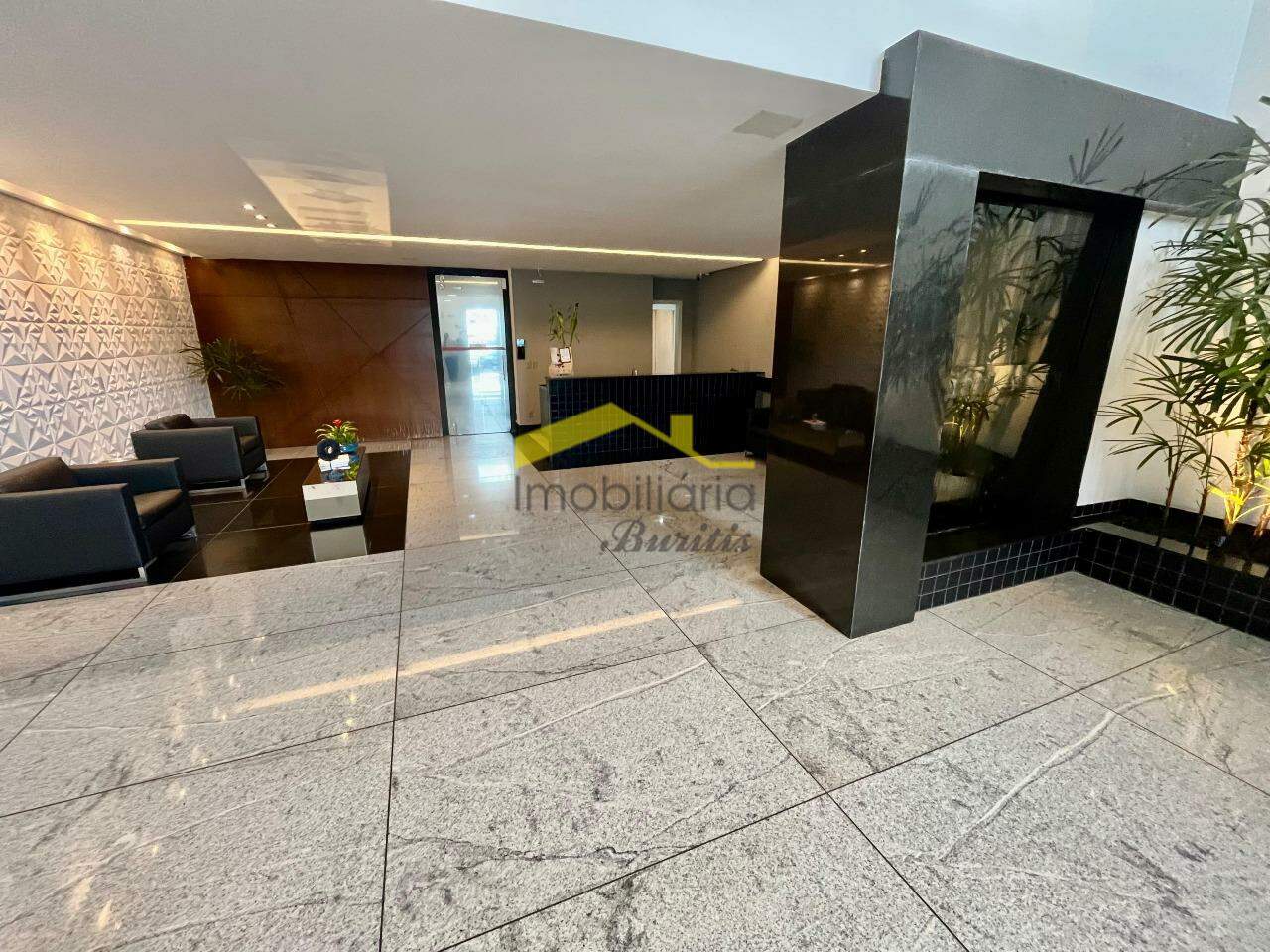 O imóvel possui sala ampla, com elegante piso em granito, iluminação planejada, rebaixamento em gesso e armários sob medida, além de ar-condicionado, proporcionando um ambiente sofisticado e aconchegante. O banheiro segue o mesmo padrão de qualidade, com bancada em granito, armário, box em blindex, espelho e piso em granito.