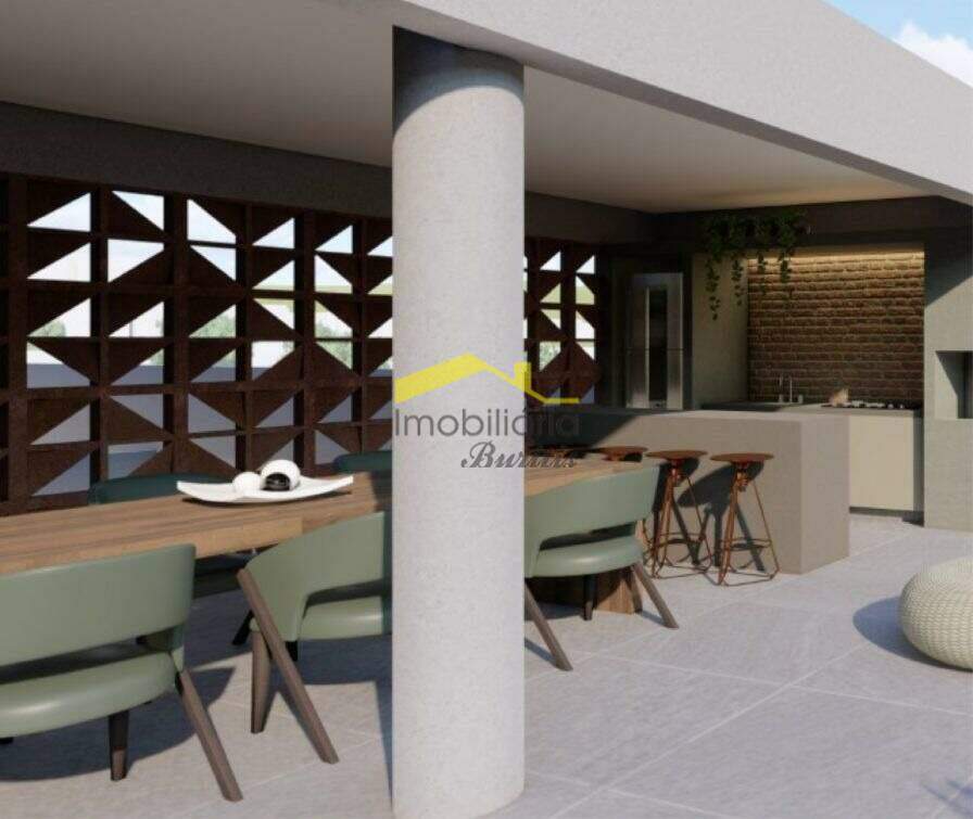 Apartamento com área total de 114,33m², sala para dois ambientes, 2 quartos sendo uma suíte, banheiro social, cozinha americana, área de serviço e espaço externo descoberto de 50,58m². 2 vagas de garagem.